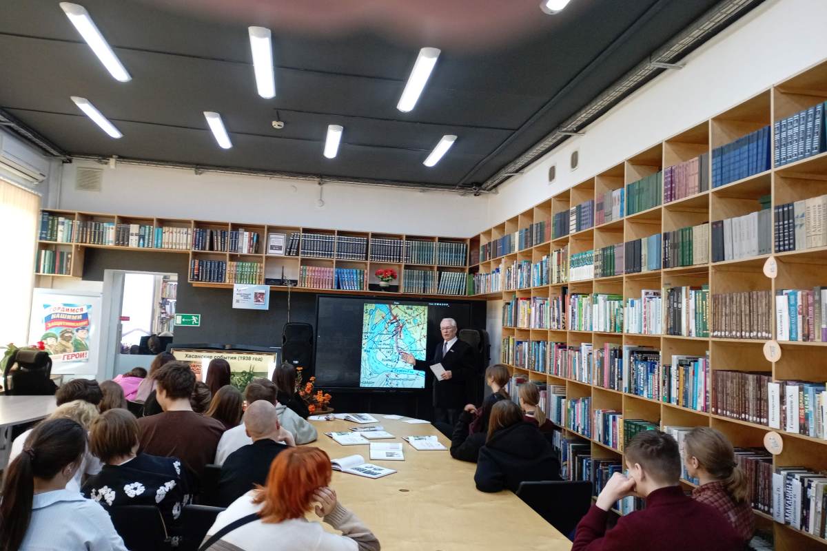 Библиотека № 21 (ул. Нейбута, 45) провела час памяти, посвящённый хасанским событиям, для учащихся старших классов МБОУ СОШ № 78. В ходе встречи ребята узнали о предпосылках конфликта 1938 года, ключевых эпизодах сражений за высоты Безымянная и Заозерная, о том, почему именно эти пограничные высоты стали точкой острого противостояния, о героизме пограничников и бойцов Красной армии. Особое внимание уделили историям Алексея Махалина, лейтенанта Левченко, лейтенанта Лазарева и других участников событий. Школьники познакомились с архивными материалами и фотографиями, посмотрели фрагменты документальной хроники. Также ребятам была продемонстрирована подборка газетных публикаций, почтовых открыток и плакатов тех лет — ребята смогли увидеть, как события освещались в прессе. В завершение мероприятия состоялась дискуссия — учащиеся обсудили значение Хасанских событий для истории страны и их роль в предотвращении дальнейшей агрессии. Встреча получилась насыщенной и эмоционально глубокой, многие ребята отметили, что узнали много нового о героической странице дальневосточной истории.