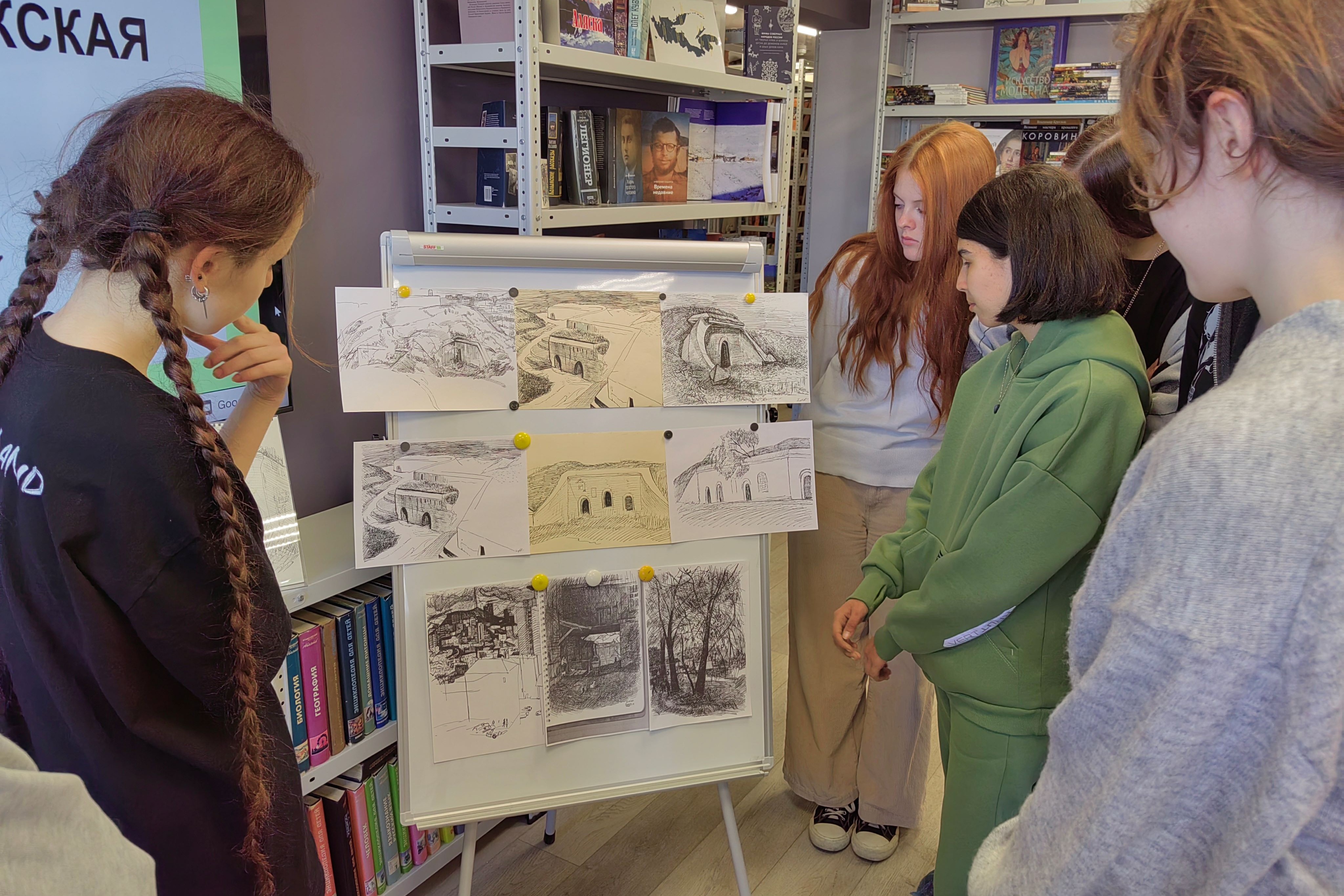 Учащиеся ДШИ № 4 стали первыми посетителями выставки картин. Они познакомились с рисунками художника, на которых изображены Форт Суворова, отдельные фрагменты – кофр с капониром, потерной и казематом из Укрепления № 1, бетонный бруствер форта № 4 с подбрустверной галереей и двумя убежищами артиллерии, форт № 1- парапет, капонир левого флангового рва и прочие.