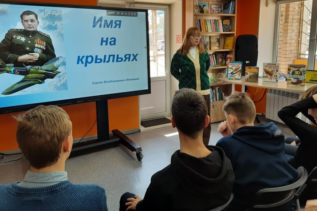 Сергею Владимировичу Ильюшину 23 марта в библиотеке № 20 посвящен час интересных сообщений «Имя на крыльях». Учащиеся 7 «А» класса СОШ № 58 посмотрели фильм «Авиаконструктор Ильюшин», рассказывающий о жизни выдающегося авиаконструктора и истории создания им штурмовиков Ил — 2, Ил — 10, бомбардировщиков Ил — 24, Ил — 28, пассажирских самолетов Ил — 12, Ил — 14, Ил — 18, Ил — 62.