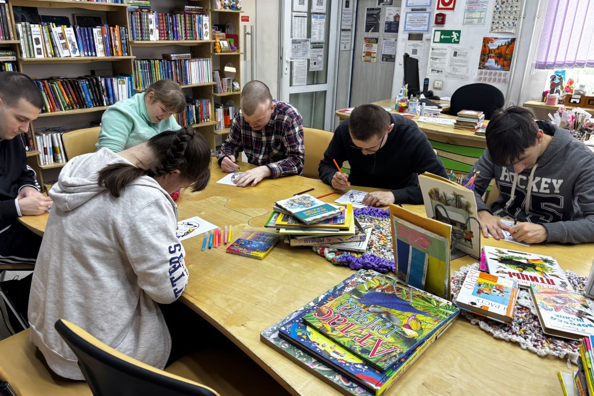 Но самым главным было рисование. Все старательно рисовали своего воробушка, с удовольствием его показывали, улыбались и общались. Это была настоящая маленькая победа для ребят – побывать в библиотеке, полистать и почитать хорошие книги, в этот день красиво раскрасить воробья, просто посмотреть книги и журналы и пообщаться между собой. Когда они уходили, каждый унёс с собой рисунок своего уникального воробья.
