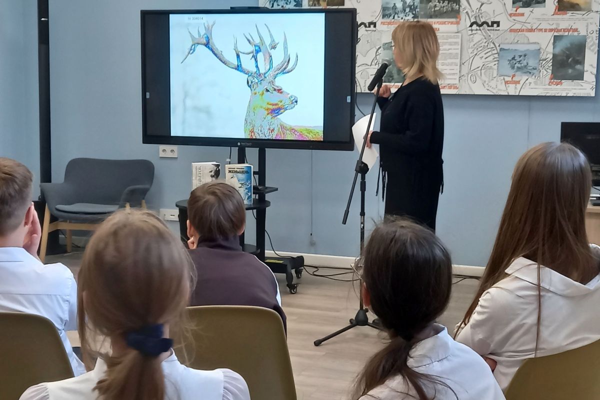 В ходе литературно-познавательной беседы о Михаиле Пришвине и его повести «Женьшень» школьники услышали отрывки из произведения о красоте долины Зусухе, о судьбоносном знакомстве главного героя с ланкой Хуа-лу, о яростной схватке оленя-рогача Серый Глаз с Черноспинником, а также о камне-сердце у самого моря.