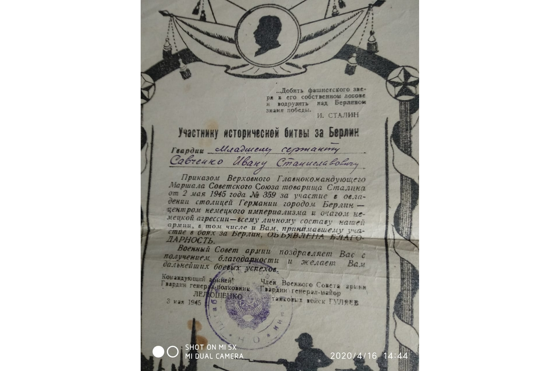 За этот бой Иван Савченко был удостоен ордена Красной звезды.