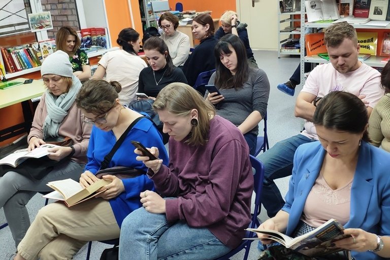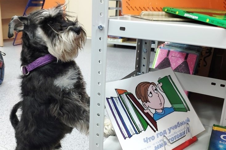 Цвергшнауцер Эрик также живо интересовался происходящим, внимательно слушал и обнюхивал книги, ведь на них осталось так много «информации» для собачьего носа. Встреча прошла в теплой, дружеской атмосфере. Надеемся на продолжение нашего знакомства и ждем новых событий в Вечерней библиотеке.