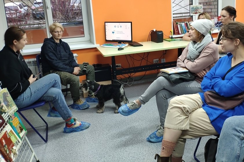 В библиотеке №20 8 апреля состоялась очередная встреча в рамках школы ответственных собаководов. Идейными вдохновителями и организаторами проекта выступили три жительницы Приморья – Екатерина Майорова, Екатерина Воронцова и Лариса Костина. Компанию опытным кинологам составил цвергшнауцер по кличке Эрик.