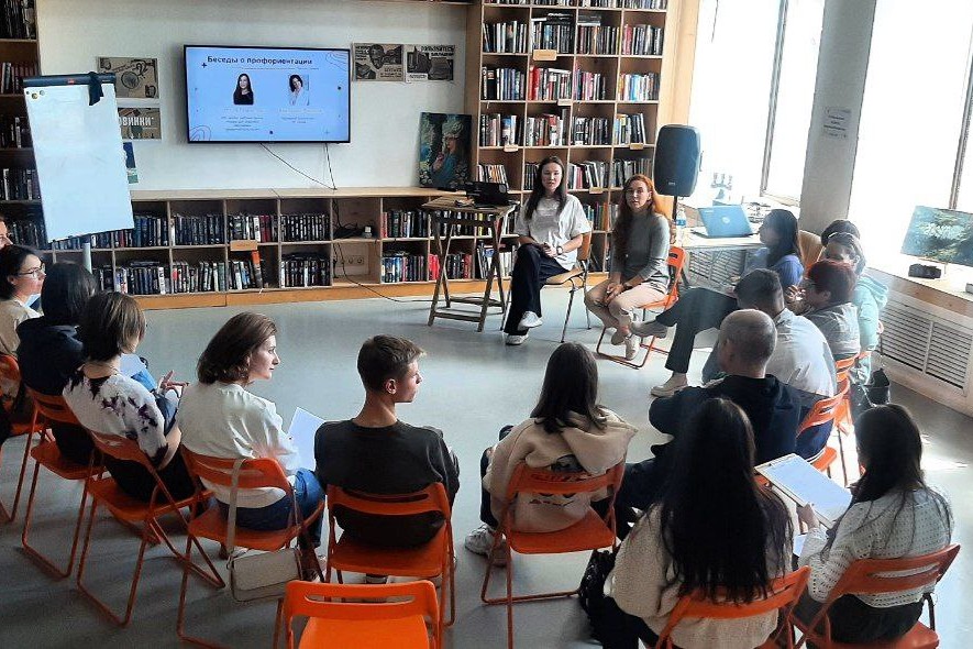 23 апреля в библиотеке им А.С. Пушкина (БУК) состоялась открытая лекция по профориентации. Во время встречи участники познакомились с Ольгой Гавриловой — HR и экспертом рабочей группы федерального проекта «Кадры для цифровой экономики» и с Екатериной Ткалиной — карьерным консультантом и HR Сбербанка.