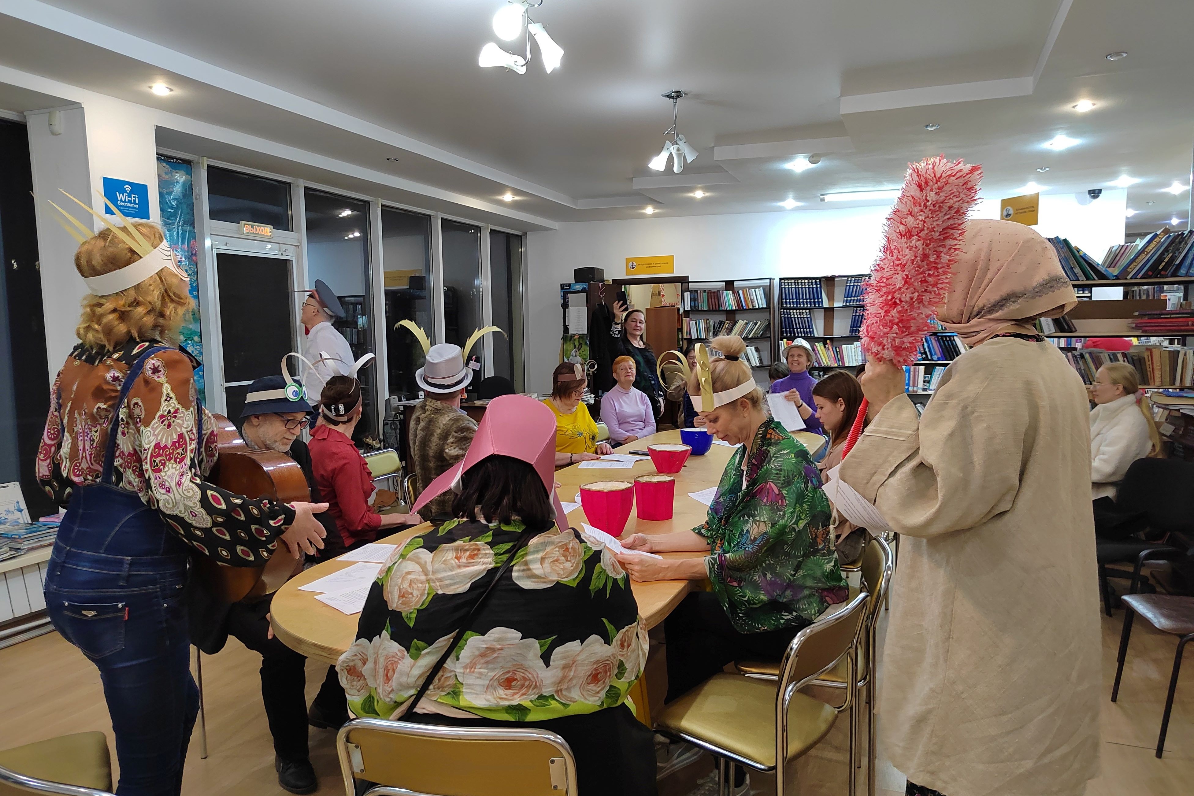 В финале Библионочи гостей ждал… Библиотечник – можно сказать, эволюция Квартирника, ведь библиотека в современном мире – это, во-первых, концентрация и консолидация многих культурных направлений. Именно так и случилось: на Библиотечнике встретились художник, актёры, певцы и даже представители научного сообщества, и все они устроили искреннее веселье с песнями (романсами под аккомпанемент гитары и скрипки), пьесой в том числе со свадьбой Мухи-Цокотухи, хороводом и чаем из настоящего самовара.