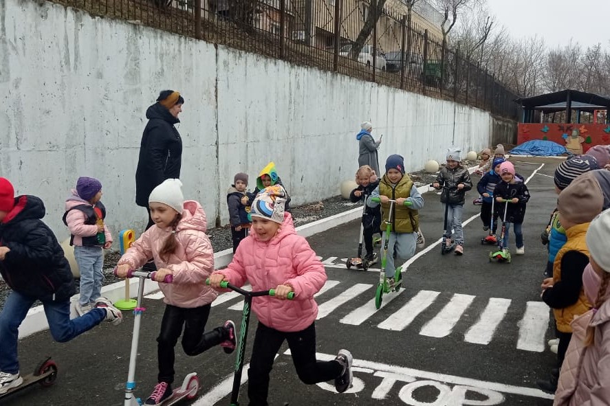 В ДОУ № 68 24 апреля, прошел День информации, посвященный правилам дорожного движения. Сотрудники библиотеки № 16 рассказали ребятам, что в жизни очень много значит вовремя полученная информация, точная и достоверная, а безопасность человека – это одна из главных потребностей человека, и знать, как ее обеспечить очень важно. Сотрудники библиотеки рассказали ребятам о светофоре, о дорожных знаках, о пешеходном переходе, называя виды общественного транспорта, рассказали почему трамвай нужно переходить впереди, а автобус и троллейбус сзади, определили где знаки запрещающие, где предупреждающие, а где информационные. В гости к ребятам на Урок безопасности пришел Ибрагимов Руслан Валерьевич, капитан полиции, старший государственный инспектор БДД ОТН ОГИБДД по г. Владивостоку, он провел с ребятами практические занятия на закрепление правил дорожного движения, рассказал о том, как должны вести себя на дороге велосипедисты и те, кто управляет самокатом, как переходить дороге, если с тобой четвероногий друг – собака, разыграли сценки, что случиться, если переходить улицу на красный свет.