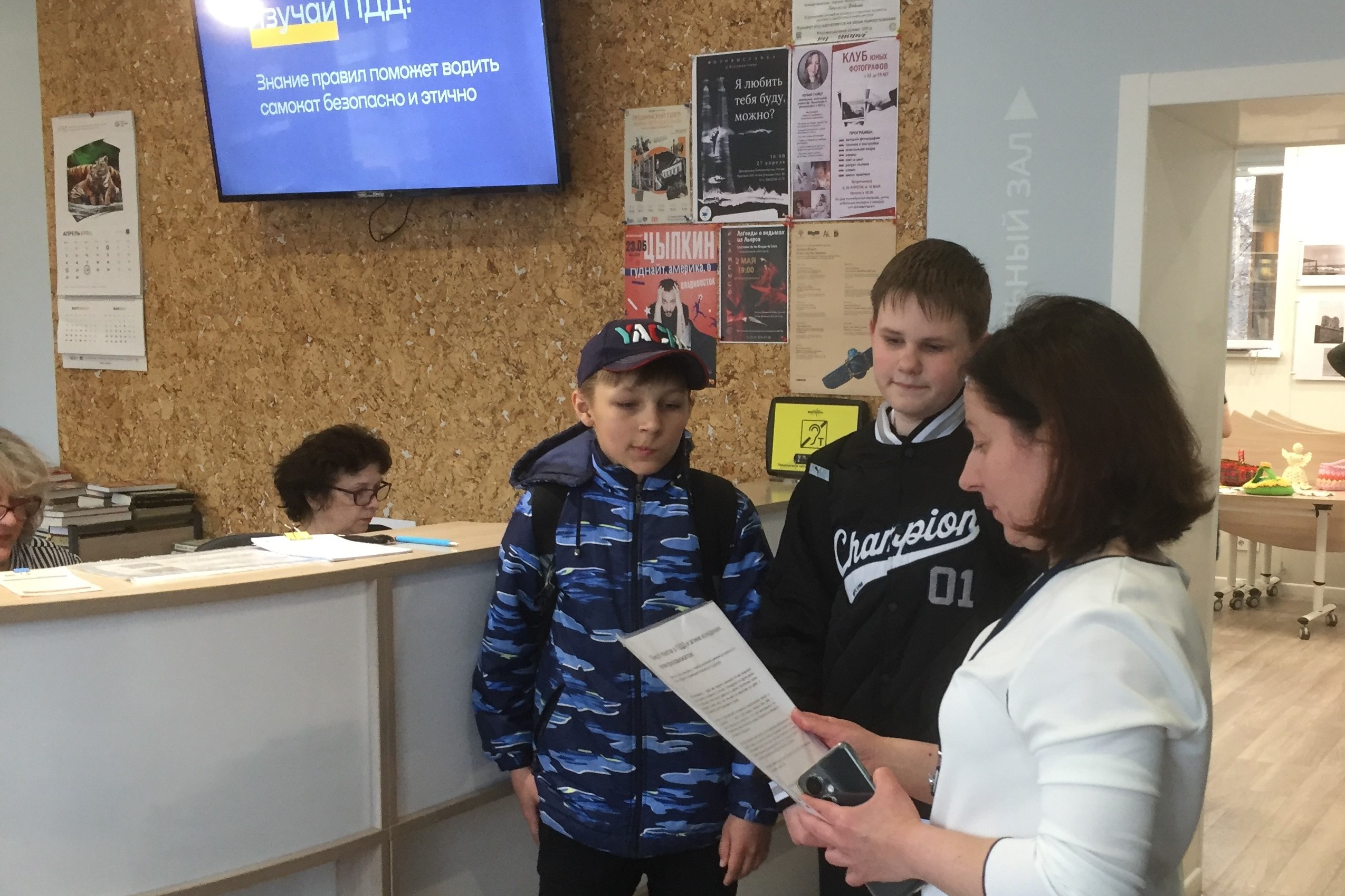 24 апреля в Центральной библиотеке им. А. Чехова прошел день информации «Безопасное дорожное движение». Сотрудники библиотеки узнали у посетителей, соблюдают ли они правила безопасного и этичного вождения электросамокатов, а также провели в игровой форме викторину на знание ПДД. Еще внимание пользователей библиотеки привлек видеоролик «Самокат: как водить этично?», демонстрируемый на информационном табло библиотеки.