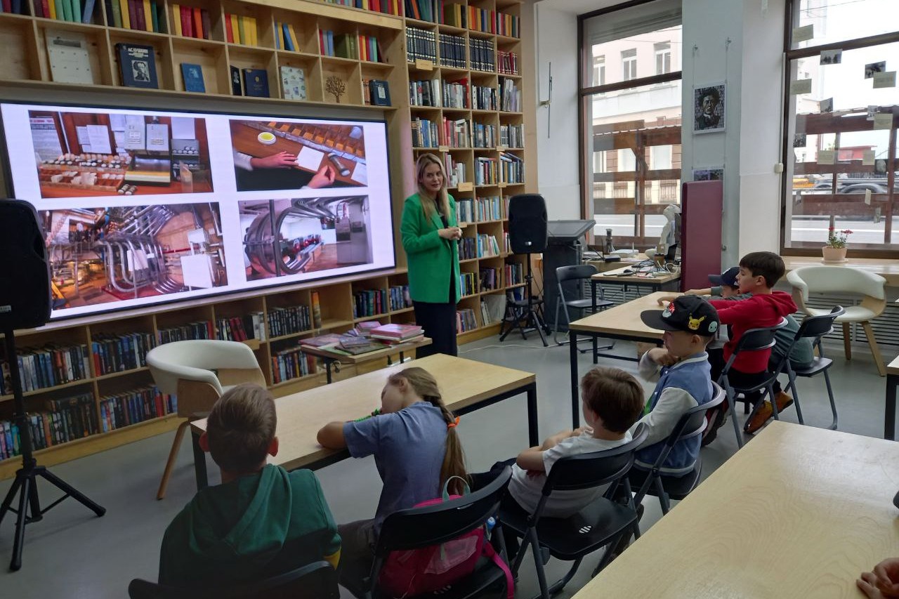 Поговорили и про любимые книги: разобрали, что такое книжные жанры, вспомнили любимых писателей и произведения, которые запомнились больше других. С удовольствием юные книголюбы знакомились с фондом детской литературы библиотеки – ребята были в восторге от разнообразия книг на полках. Удивительно трогательные и добрые истории про животных Анны Бус и Холли Вебб, приключения Котов-Воителей Эрин Хантер, красочные поучительные сказки народов мира, различные энциклопедии, начиная от истории динозавров до 4D изданий про вселенную. Дети не просто листали книги, любуясь яркими иллюстрациями, каждый выбрал для себя понравившуюся книгу и погрузился в чтение.