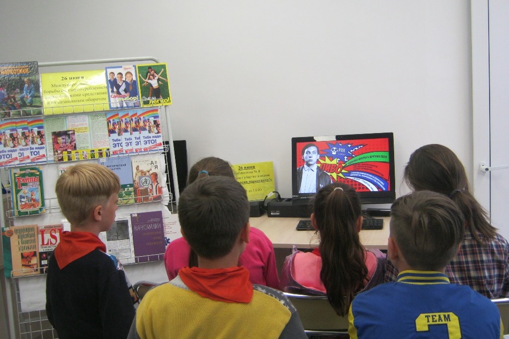 В библиотеке № 4 для читателей демонстрировался антинаркотический клип для школ, профилактика ПАВ (психоактивные вещества), наркотиков. После просмотра беседовали с детьми у книжной выставки «Сделай выбор в свою пользу»!».