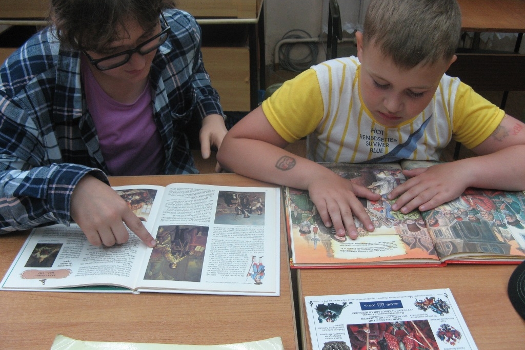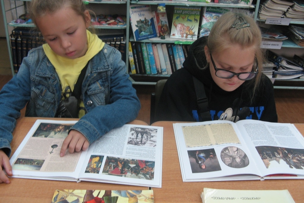 Ребята с интересом рассматривали красочные исторические издания, понравившиеся книги взяли почитать домой.