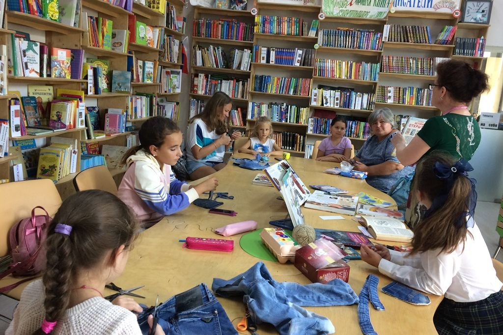 В следующий четверг 12 сентября слушали «джинсовые истории», по ролям читали сказку Корнея Ивановича Чуковского «Телефон». Заодно узнали истории вещей, которые мы видим каждый день и увидели привычные вещи с неожиданной стороны, а потом вырезали из старых джинсов карман, и из него получилась отличная сумочка для сотового телефона.
