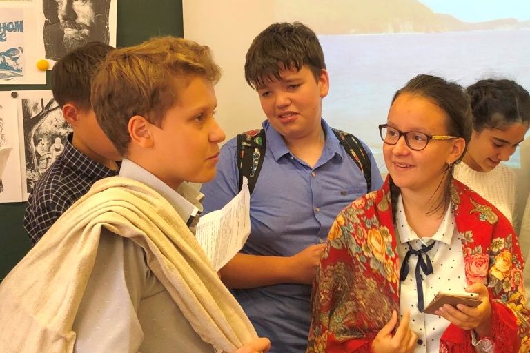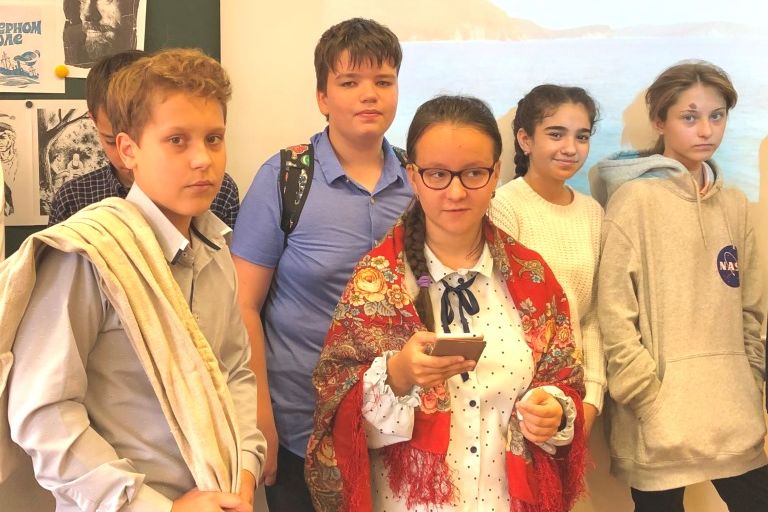 В завершение занятия в исполнении учащихся класса состоялся первый показ инсценировки Н.Е. Матяш по отрывку из повести И.У. Басаргина «Сказ о Черном Дьяволе» «Зеленый клин – земля вольная», которую затем предполагается перенести и на библиотечные подмостки.