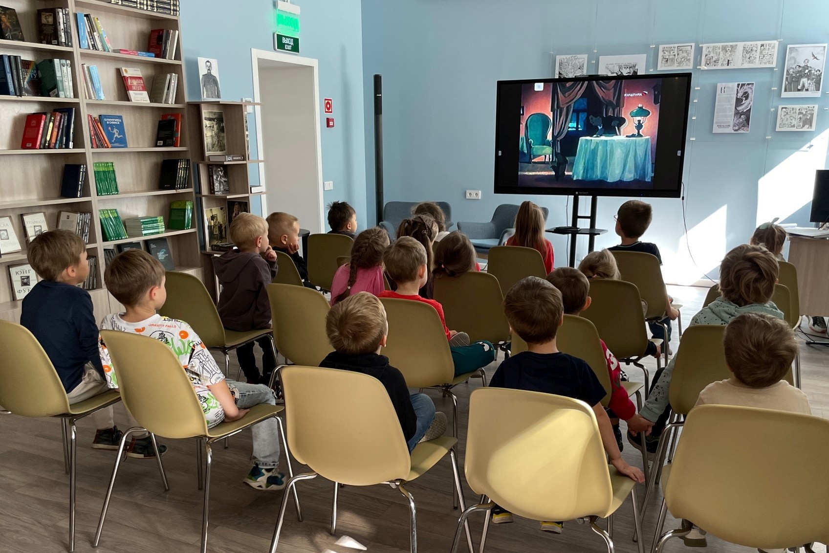 Дошкольники узнали, что библиотека носит имя Антона Чехова, великого русского писателя, создавшего много прекрасных детских произведений. Дети познакомились с книгой «Каштанка», а затем в многофункциональном зале посмотрели одноименный мультфильм. Сюжет своей трогательностью впечатлил ребят и после просмотра в обсуждении они показали верное понимание его содержания.