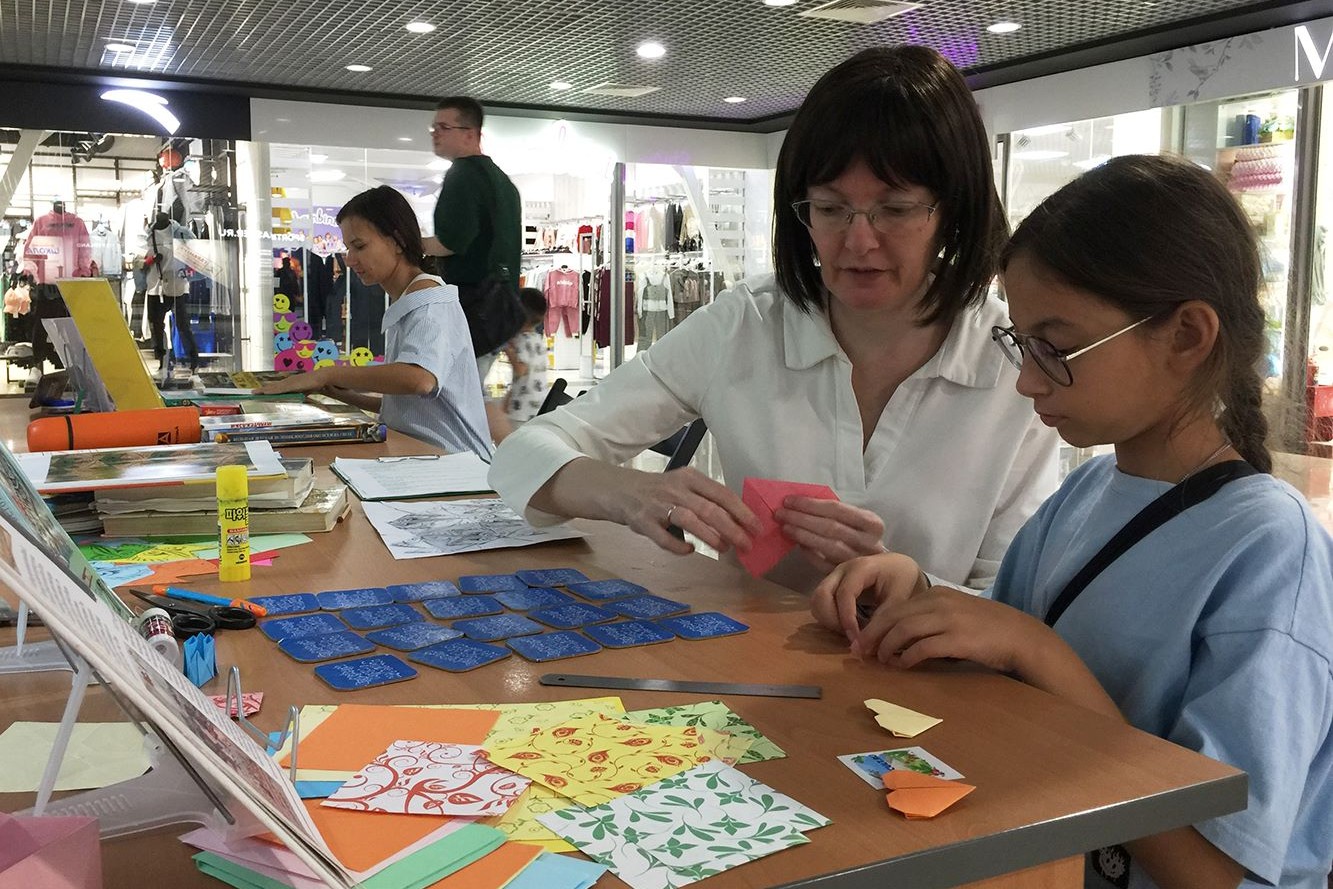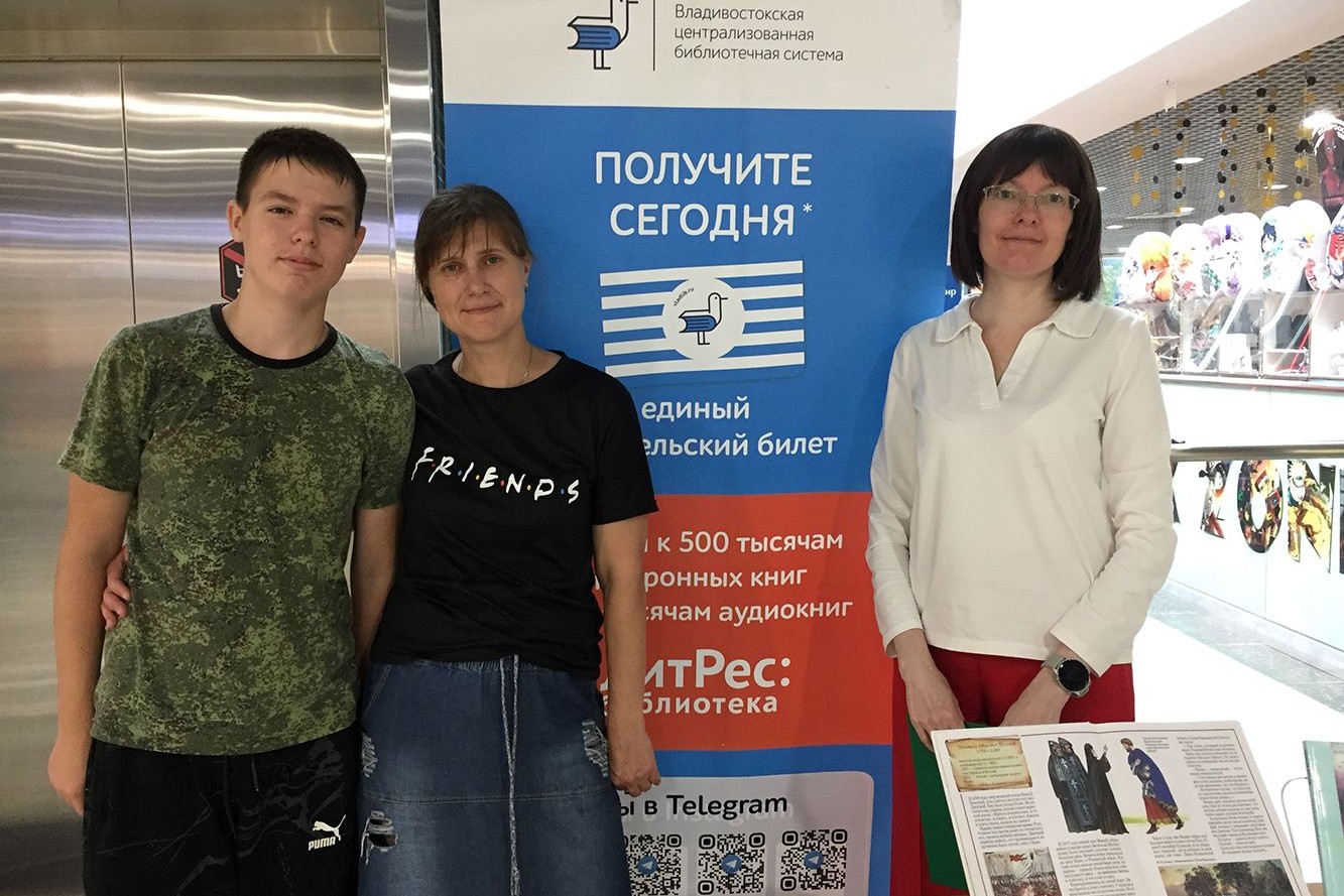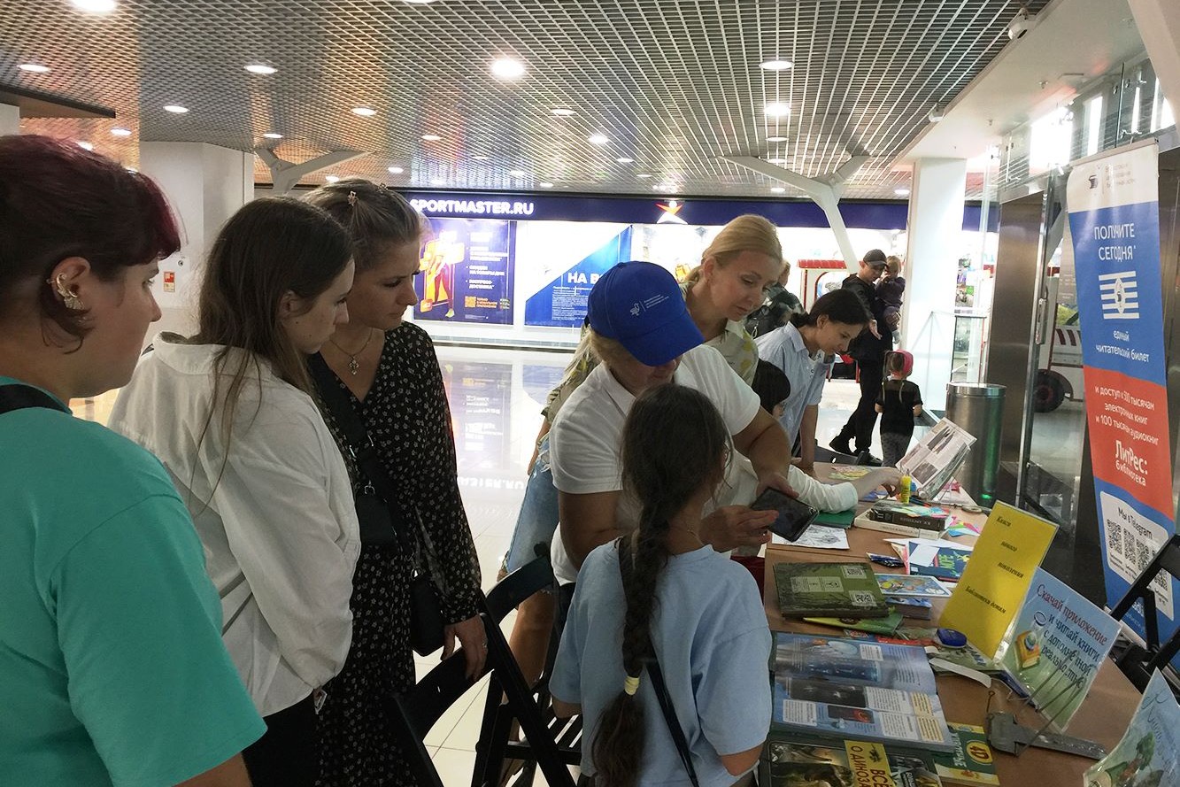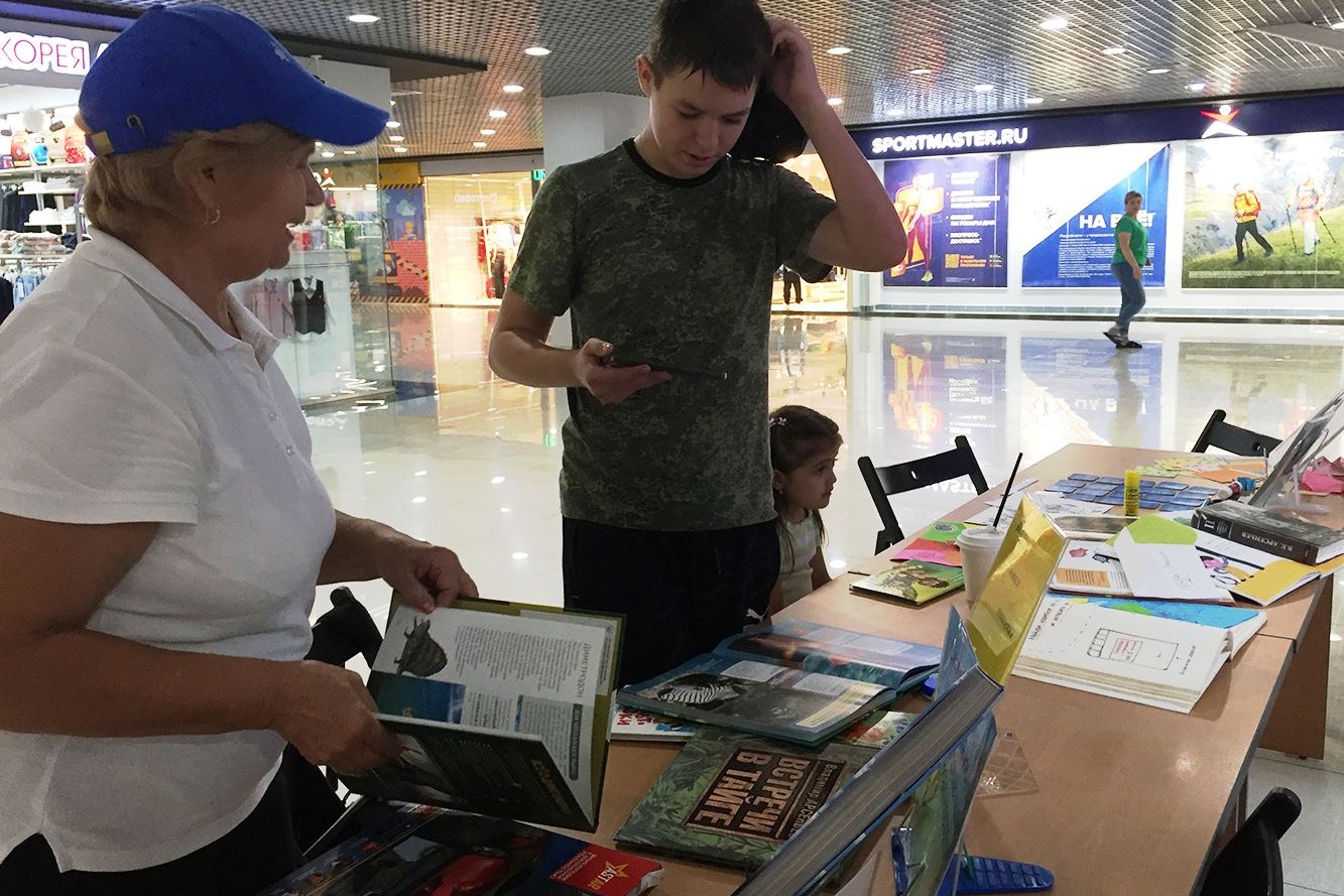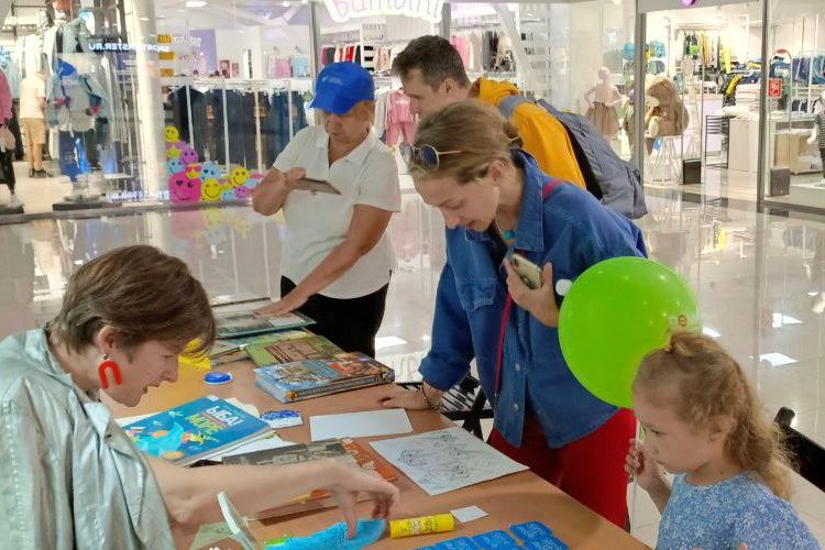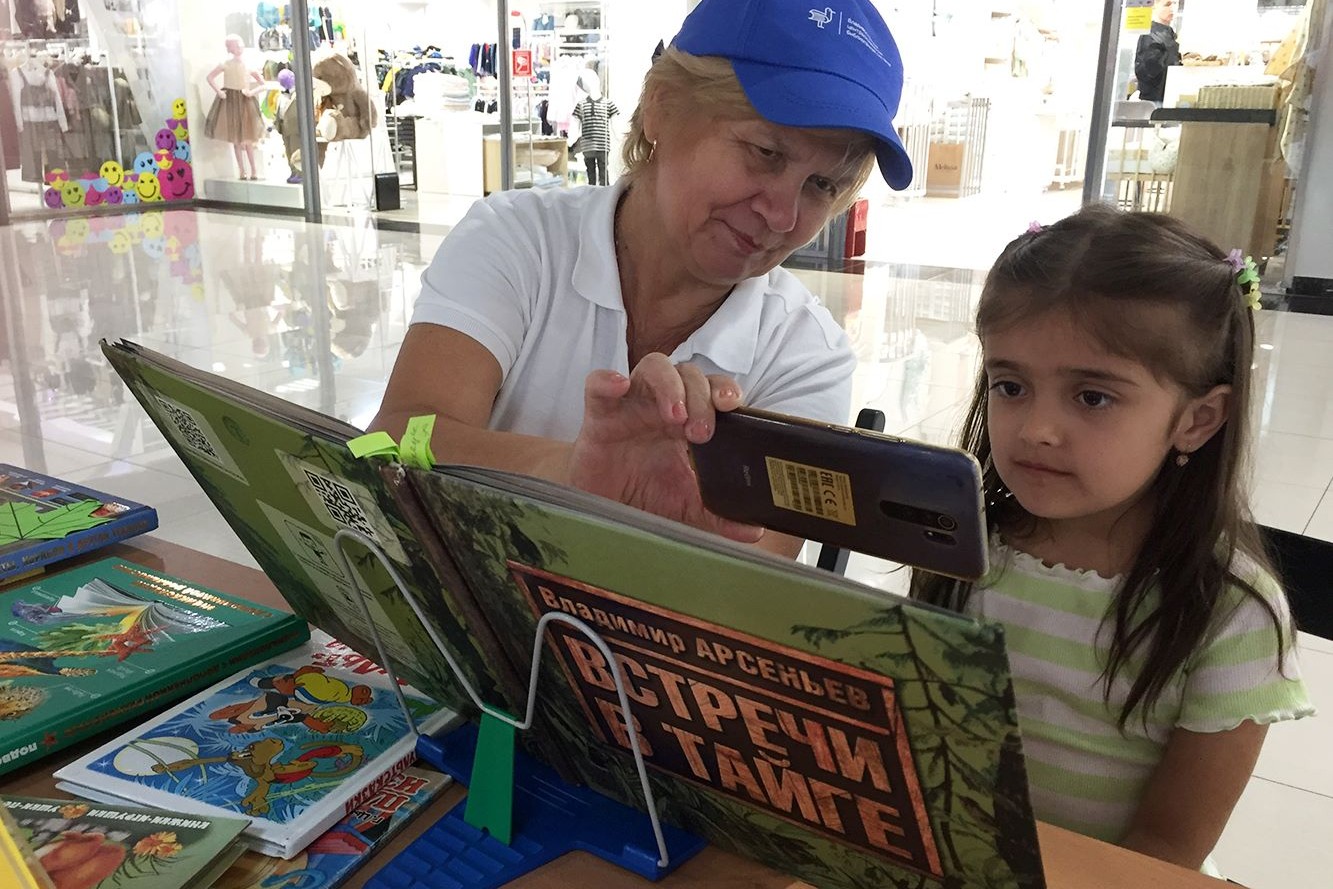 16 сентября сотрудники муниципальных библиотек знакомились с посетителями торгового центра. Желающие могли сложить фигурку оригами из специальной бумаги, сделать аппликацию, и, конечно, посмотреть книги. Бесспорно, больше всего внимание и детей и взрослых привлекли книги с дополненной реальностью, поколение постарше просто смотрело на топающих динозавров и выплывающих осьминогов на экране телефона, а более привычные к гаджетам подростки сами направляли движение «голограммы» самолета. А вот книги В.К. Арсеньева были и в обычном варианте и также с дополненной реальностью: хочешь наводи телефон на QR-код на странице и смотри, как анимированный филин ловит рыбу, а хочешь полистай один из томов собраний сочинений Арсеньева издательства «Рубеж». 10 сентября исполнился 151 год со дня рождения Владимира Клавдиевича, и на память все желающие могли взять с собой забавную наклейку с портретом исследователя Приморского края. Казалось бы, столько в самом торговом центре всего интересного, а на улице вовсю еще стоит изумительно теплая погода, но по прежнему тихая радость узнать что-то новое, интересное из книги останавливает на десять минут, а то и на все полчаса рядом с библиотечной локацией любопытных взрослых и детей.