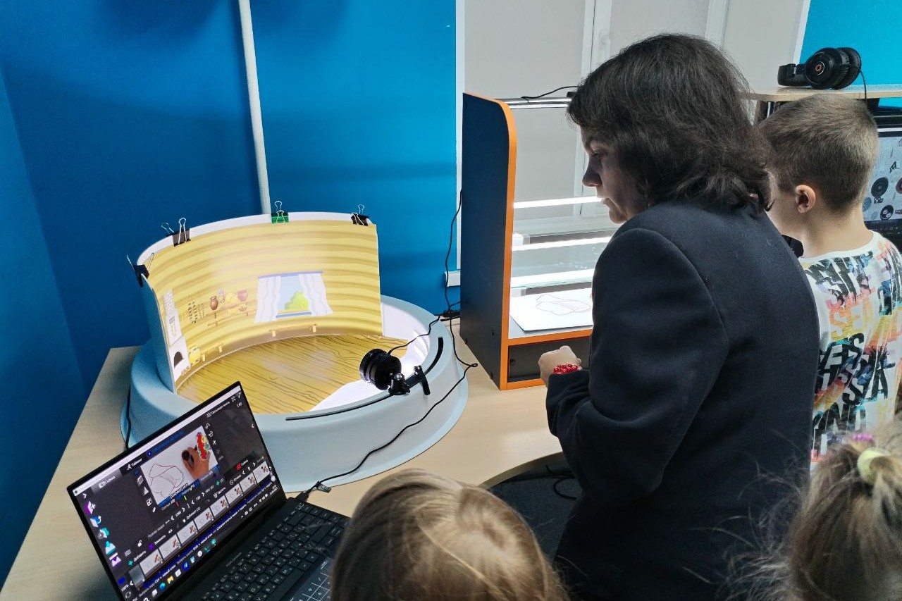 23 сентября в модернизированной библиотеке № 20 на Заре состоялось очередное занятие в мультстудии «КНИГОмультик». Юлия Алексеевна, педагог студии, продолжила рассказывать ребятам об этапах и особенностях создания мультфильма. Для формирования мультипликационной насмотренности ребята увидели картину режиссёра, художника и аниматора Натальи Грофпель «Сказка».