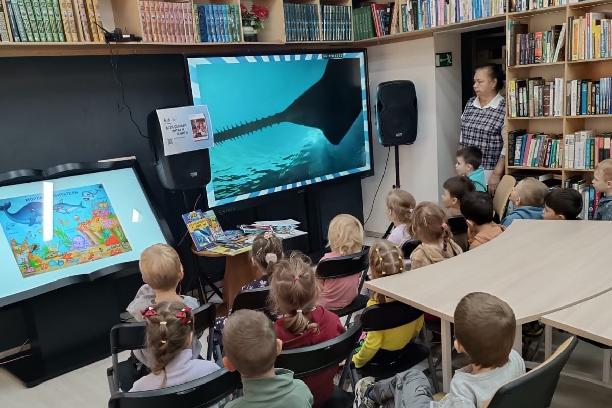24, 25 и 26 сентября в детском саду № 187 для разных групп детей сотрудники библиотеки № 17 провели познавательные часы. Дети познакомились с удивительным миром бескрайних глубин морей и океанов. Дети узнали о существовании китов и дельфинов, разнообразных видах рыб, населяющих нашу планету. Узнали, что Приморский край омывается Японским морем, где обитает множество видов рыб. Также попытались отгадать морских животных – и многих смогли. Радости детей не было предела.