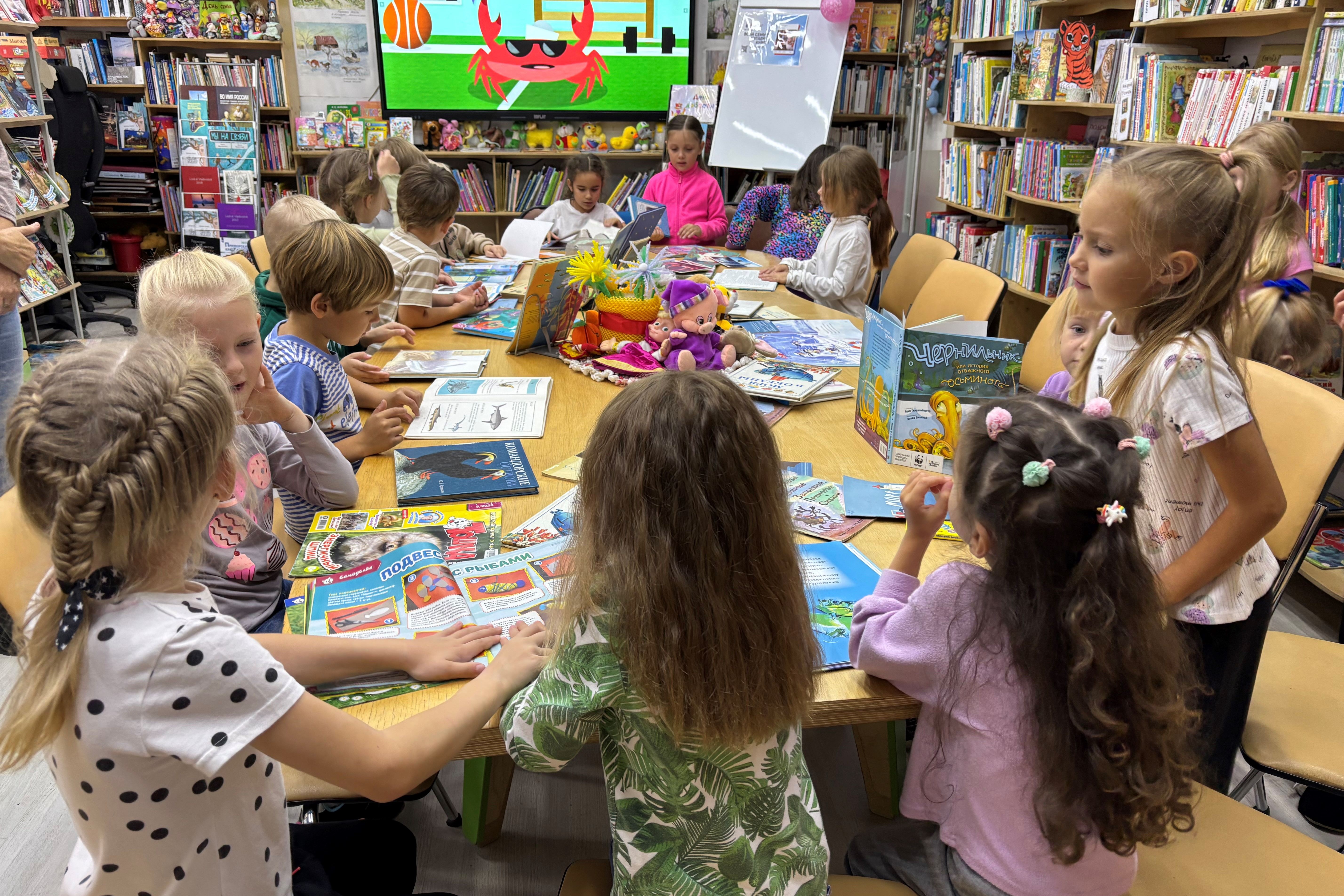 26 сентября библиотека № 12 провела для воспитанников старшей группы детского сада «Мишутка» экологический час «Морские обитатели». Библиотекарь помогла ребятам познакомиться поближе с морскими обитателями подводного царства. Дети с интересом совершили необычное путешествие в глубины морей и океанов, узнали многие тайны подводного мира и повстречали там как хорошо знакомых морских обитателей, так и тех, о существовании которых они даже не подозревали. Они подробнее узнали об обитателях морей и океанов, живущих как у самой поверхности водоёмов, так и тех, кто не мыслит своей жизни без дна морского. Ребята активно участвовали в беседе, отвечали на вопросы, делились своими знаниями, отгадывали веселые морские загадки. А в завершении мероприятия дети посмотрели познавательный мультфильм и рассмотрели красочные иллюстрации книг.