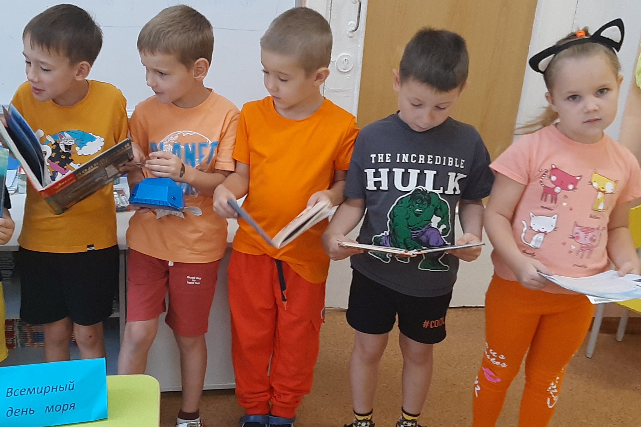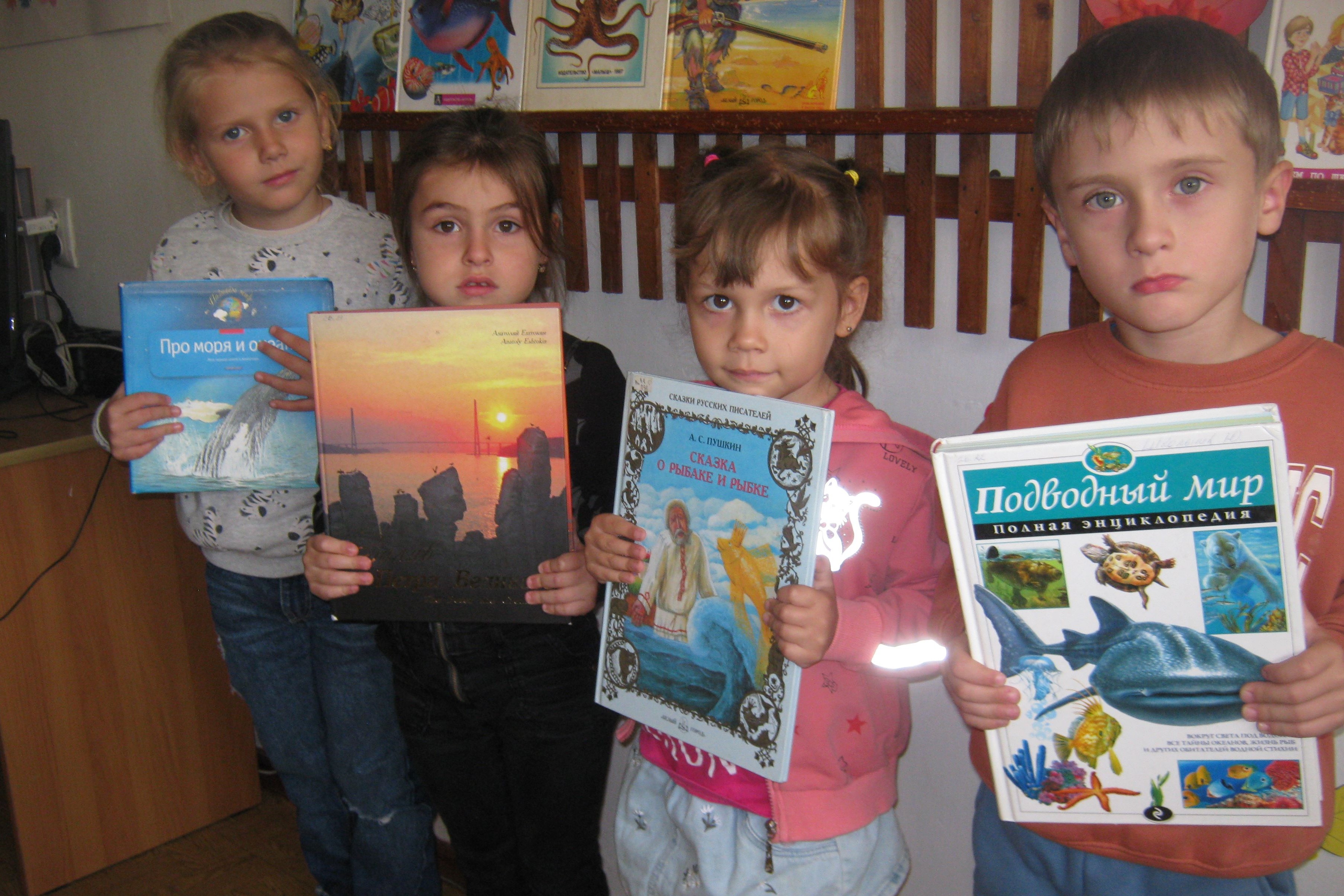 24 сентября библиотека № 15 организовала «морскую» встречу с ребятами Д/С №162, старшая группа «О морях и за морями». День моря отмечается с 1980 года и по сей день — это праздник признательности и любви людей к морским просторам нашей Земли. Море воспето поэтами и композиторами, художниками и скульпторами. О море сняты фильмы и познавательные мультфильмы для самых маленьких жителей планеты. Вспомнили дети «Сказка о рыбаке и рыбке» Александра Сергеевича Пушкина, с удовольствием показали свои знания в ответах викторины о золотой рыбке. И то, что старик со своею старухой жили у самого синего моря, стало поводом чуть – чуть пофантазировать и дети решили, что таким морем может быть наше Японское. Малыши выбрали книги, которые им понравились после обзора. «Загадки моря» — детская энциклопедия морских обитателей, понравилась книга Д. Дефо «Робинзон Крузо», адаптированная для самых маленьких.
