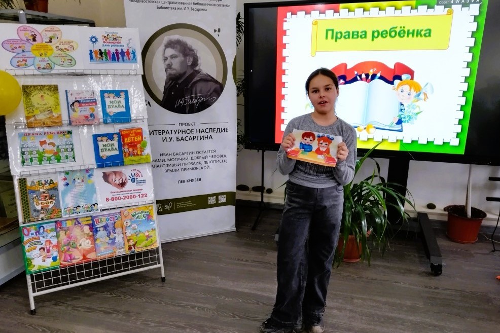 Библиотека им. И.У. Басаргина организовала познавательное путешествие «В стране Прав и Обязанностей» для детей детского центра «Джем» и воспитанников МБОУ ДО «ДЮЦ» «Творчество» г. Владивостока» Клуб «Звездочка». Открылось занятие обзором книжной выставки «Имею право», на которой были представлены книги «Конституция Российской Федерации для детей», «Книга о правах человека», «Мои права» и другие. Познавательная презентация познакомила ребят с основными положениями Конституции РФ и Конвенции о правах ребенка, с основными правами и свободами детей. Полученные знания были закреплены в беседе, которая вызвала большой интерес у ребят. Завершилось занятие игрой «Угадайка», в ходе которой ребята узнавали о том, на что они имеют право.