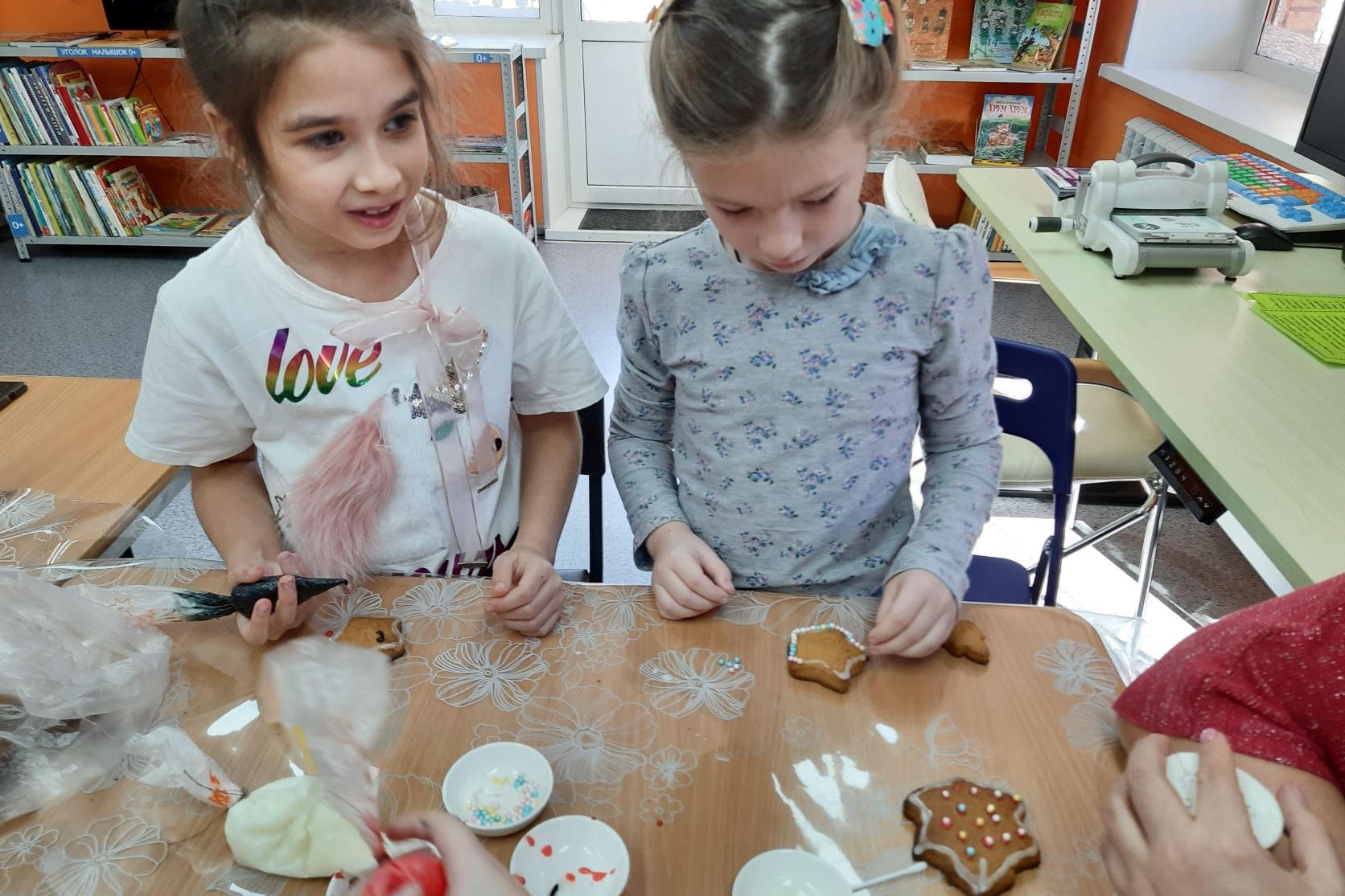23 декабря в библиотеке № 2 в творческой мастерской вместе с ребятами из группы продленного дня «Деткам Просто» решили сделать подарок своими руками. Наступающий 2022 год является годом тигра. Из цветной бумаги дети изготовили очень нужную вещь – закладку для книг в виде симпатичной мордочки тигра. Творческая мастерская закончилась новогодней дискотекой и веселым настроением.