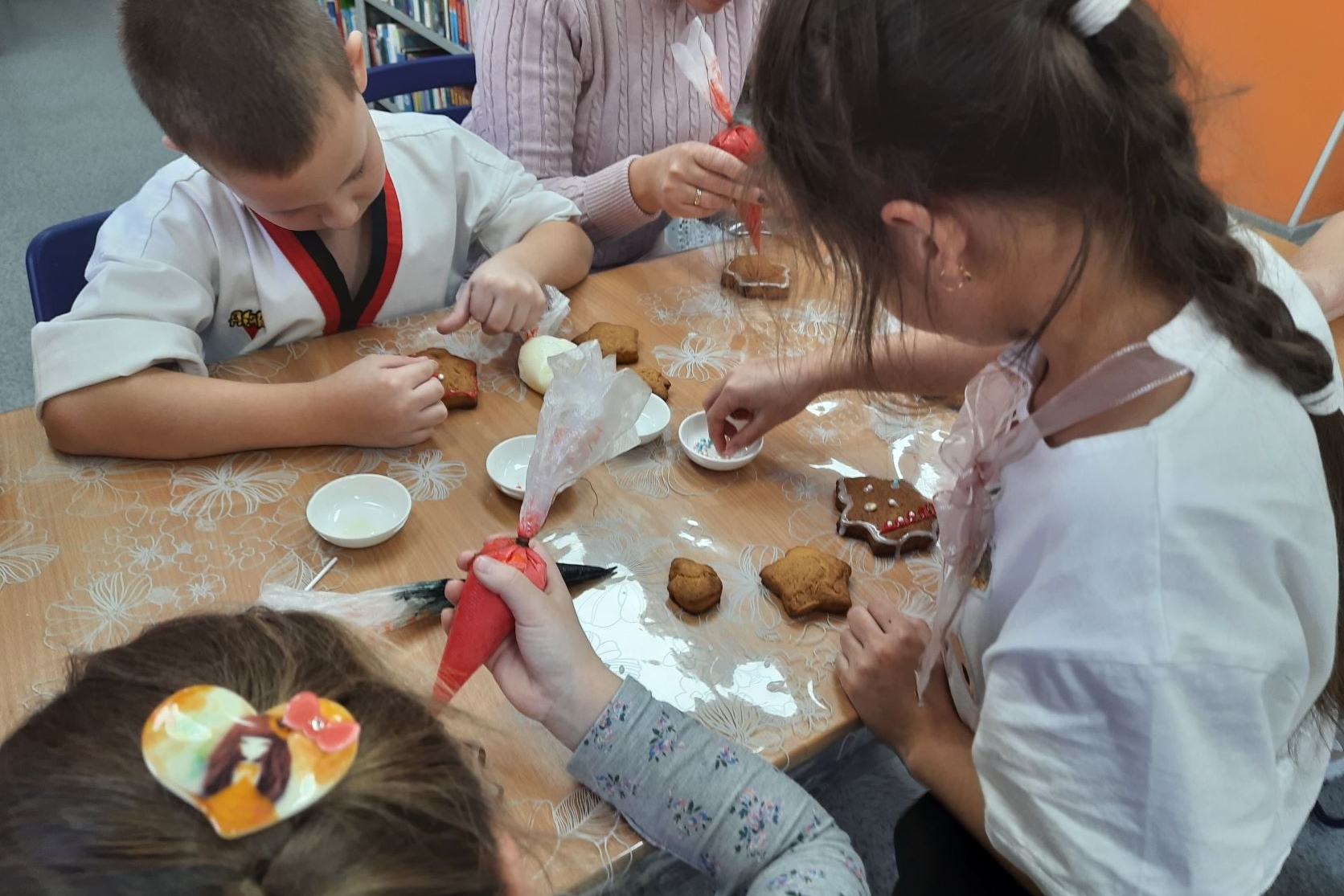 18 декабря в библиотеке № 20 в рамках проекта «Календарь ожидания Нового года» состоялась беседа «День новогодней выпечки» и мастер-класс «Имбирный пряник», который провела читательница Вера Викторовна Гармашова. Библиотекари подготовили новогоднюю книжную выставку и рассказали историю о новогодней выпечке. Одним из самых популярных десертов в Англии (и в Европе вообще), стало печенье с имбирем. Благодаря уникальным свойствам имбиря печенье, кроме необычного вкуса и аромата, отличается согревающей способностью, что особенно важно во время зимних праздников. Согласно легенде, впервые (в XII веке) печенье с имбирем испек один из английских монахов. Оно настолько понравилось остальным монахам, что вскоре стало одним из любимейших лакомств. А еще через некоторое время печенье с имбирем обрело популярность не только в Англии, но и во всей Европе.