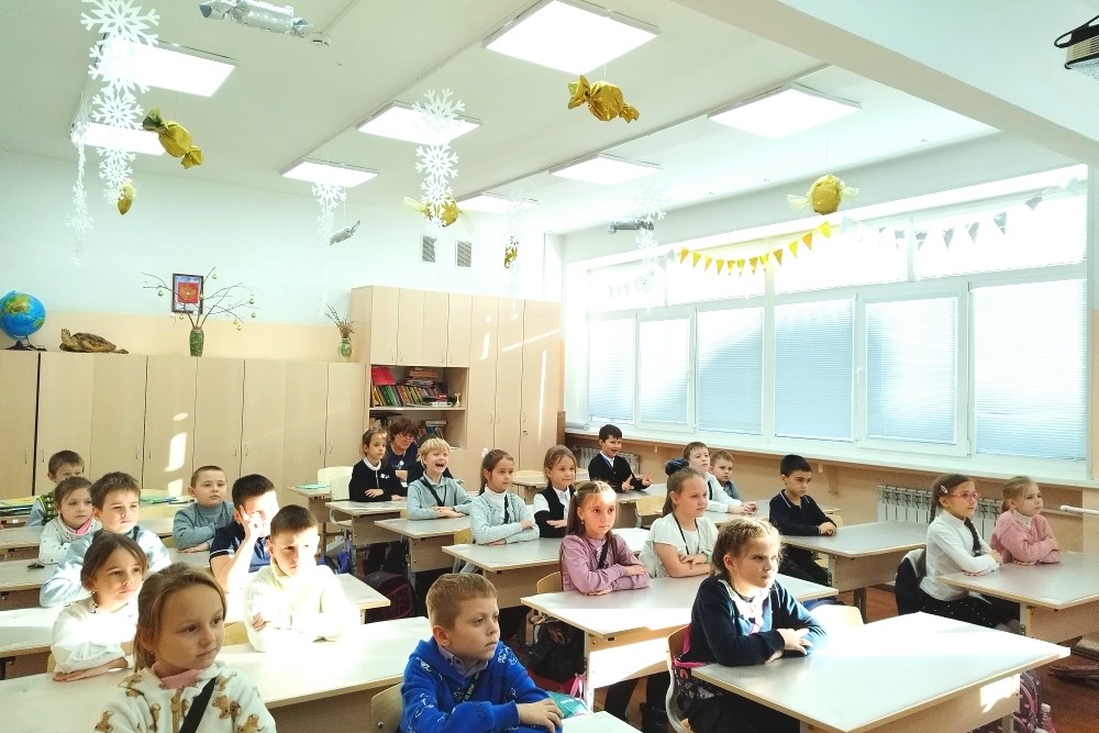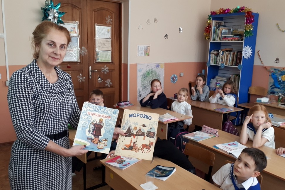 Ученики 2-го «Б» класса СОШ № 35 после уроков 20 декабря поспешили в библиотеку № 8. Сначала посмотрели короткометражный фильм «Новогодний подарок» из серии фильмов «Киноуроки в школах России» режиссера Елены Дубровской. После просмотра фильма на вопрос: «Кто вам больше всего понравился в фильме?» второклассники все как один ответили — Девочка-фея! Дети ей поверили так, будто сама Марьяна тоже волшебное существо и с Дедом Морозом знакома гораздо ближе, чем другие люди.