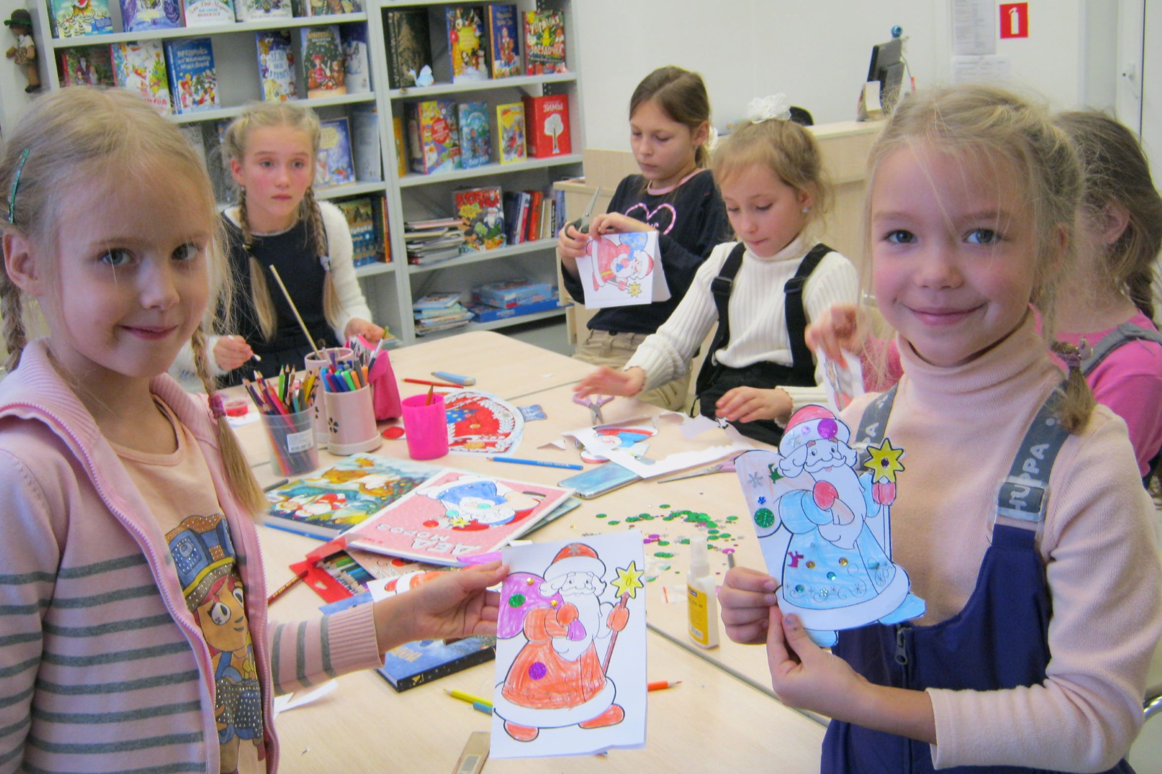 Юные читатели библиотеки № 8 в этот же день на творческой мастерской делали новогоднюю открытку. Самое главное в этой открытке было украсить шубу Дедов Морозов понаряднее. И почему-то это занятие подвигло девочек поговорить о любви. По разговорам получалось, будто на творческой мастерской делали не предпраздничные новогодние открытки, а валентинки, но пусть так, ведь главное, что в воздухе для детей витает добрый дух Рождества.