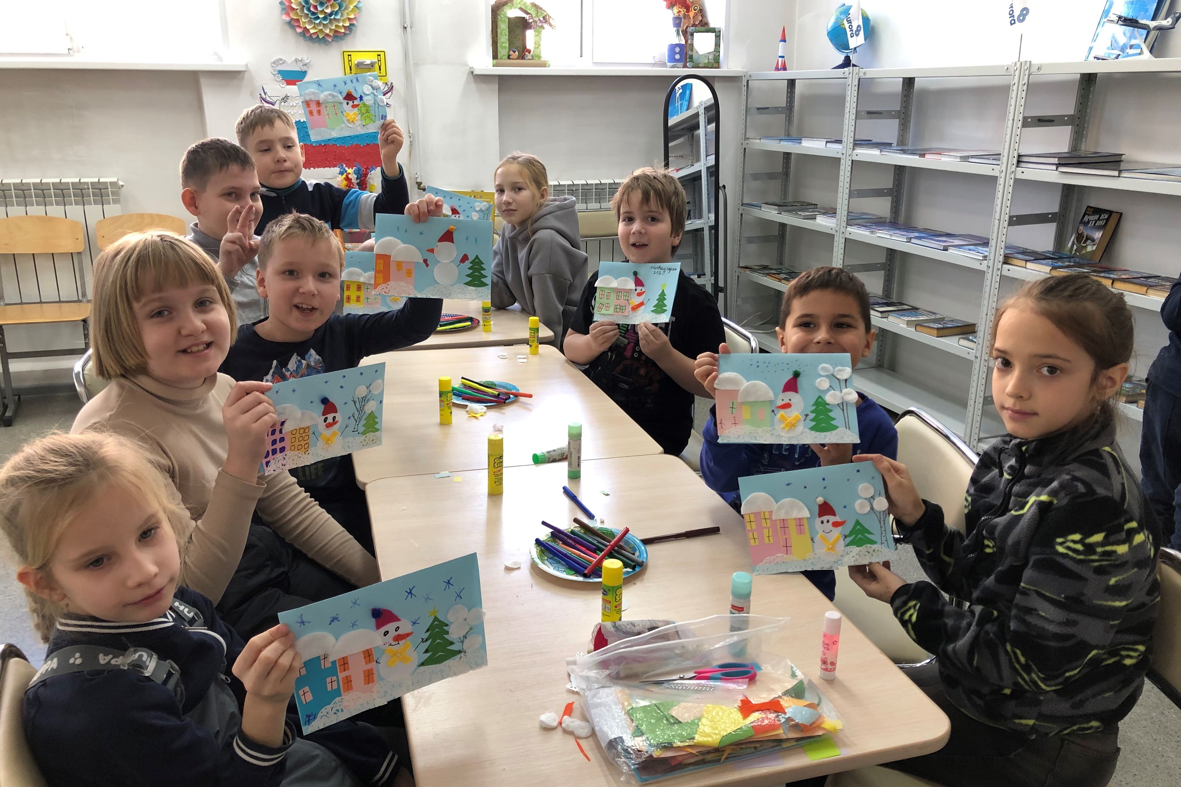 Создать зимний пейзаж с помощью аппликации библиотека № 2 пригласила ребят школы продленного дня. В работе использовали цветную бумагу, картон, ажурные салфетки, а с помощью ватных дисков изобразили снег на крышах домов и на ветках деревьев. Дети с вдохновением подбирали нужные им элементы и располагали свою композицию на основе, а уже потом приклеивали детали. В итоге у ребят получились яркие и красочные работы, которые станут частью зимнего украшения в доме и напомнят о проведенном с пользой времени в любимой библиотеке.