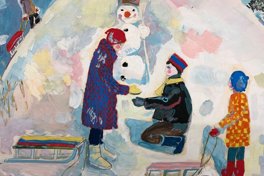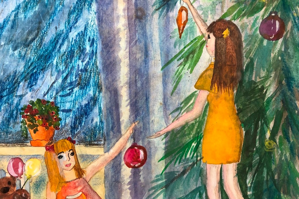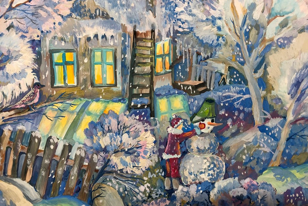 Одна из самых любимых тем в живописи юных художников – это зимнее сказочное, волшебное время. Зима дарит им множество неповторимых сюжетов: заснеженный лес, дети катаются на коньках и санках, лепят снеговика, новогодняя елка с подарками под ней.