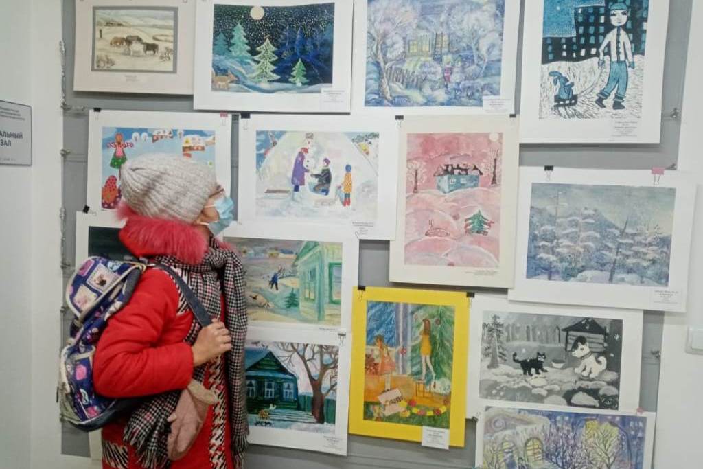 Передвижная выставка «Зимушка-зима» привлекает внимание каждого посетителя библиотеки, которые подолгу рассматривают и обсуждают детские картины.