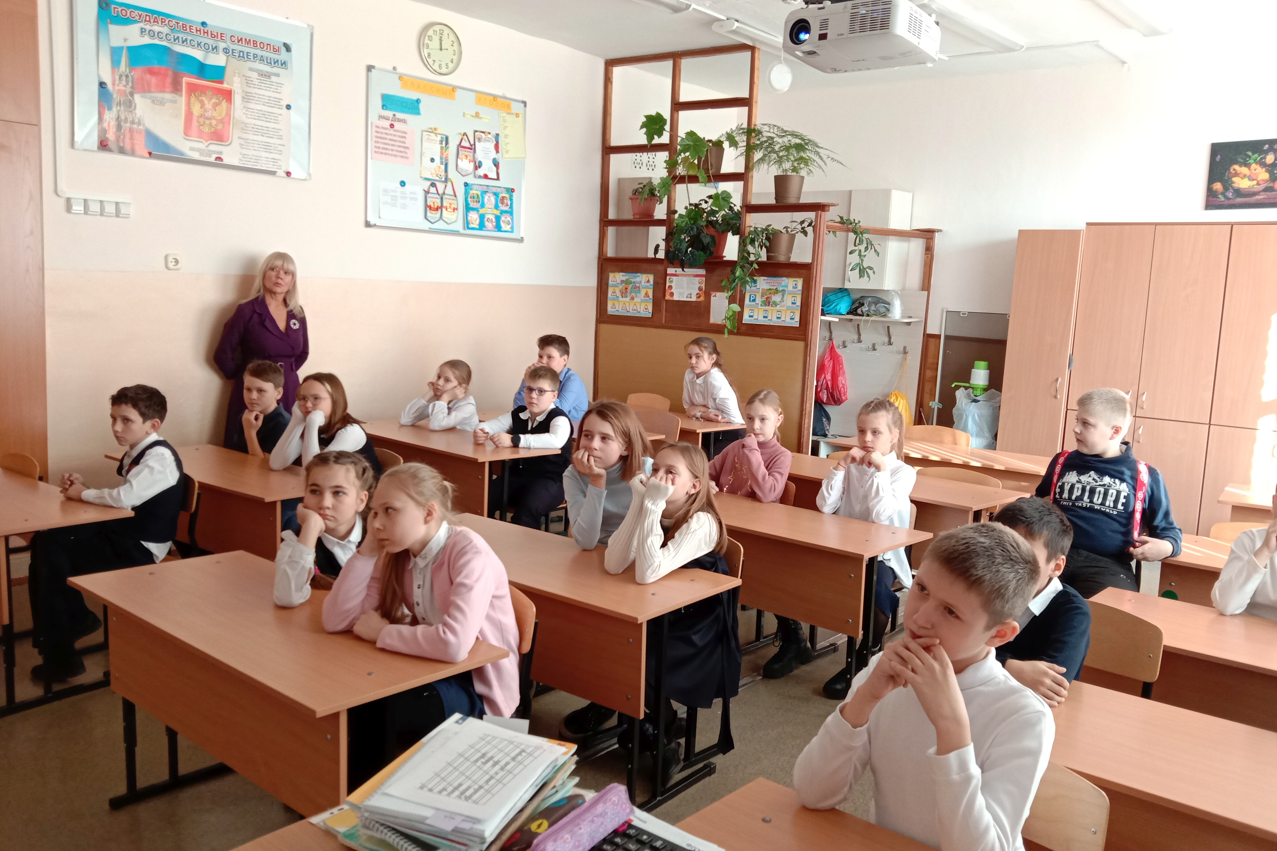 Урок продолжил просмотр короткометражного фильма «Воин света». Он снят по одноименному рассказу Елены Дубровской из её книги «Детская книга о самом главном», а иллюстрации к книге рисовали дети. Ребята с интересом смотрели, а после – обсуждали сюжет, поведение героев, рассказывали, что узнали о них. В фильме показана борьба добра и зла. Он снят для того, чтобы люди учились растить в своей душе «Воинов света», были добрыми, смелыми, справедливыми, боролись со злом в любых его проявлениях, несли свет и душевное тепло окружающему их миру и всему живому.