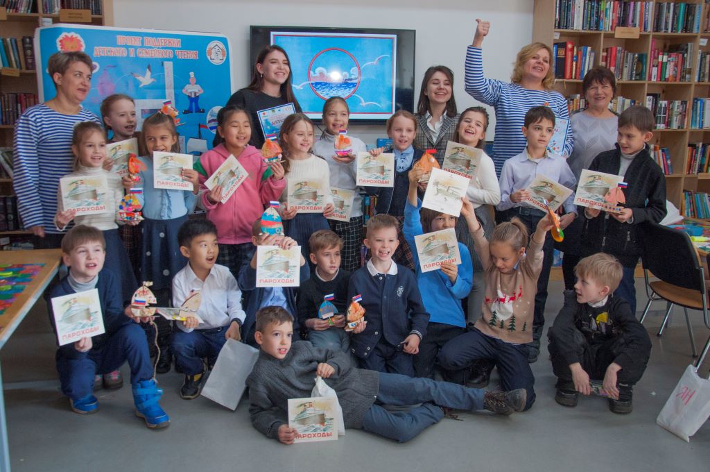 27 января в библиотеке «БУК» второклассникам школы №9 представили новые детские книги, выпущенные в рамках программы «FESCO – детям», направленной на поддержку детства и юношества. Это переиздания, знакомящие маленьких читателей с историей развития судоходства: «Пароходы» Александры Праведниковой и «О кораблях» Михаила Луганского.