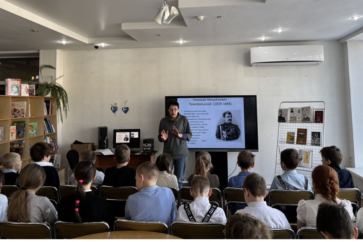 Библиотека №3 (ул. Хабаровская, 19) продолжает знакомить школьников школы №26 со знаменитыми людьми Приморья в рамках программы «Я – приморец!». Из увлекательной презентации ребята 4 «А» и 3 «А» классов узнали 23 января о всемирно известном русском путешественнике-исследователе, чья блистательная карьера началась именно с изучения нашего родного Уссурийского края. Николай Михайлович Пржевальский был не просто первопроходцем, открывавшим новые земли, но и выдающимся ученым, который вел комплексные исследования и тщательно фиксировал все свои наблюдения в дневниках.