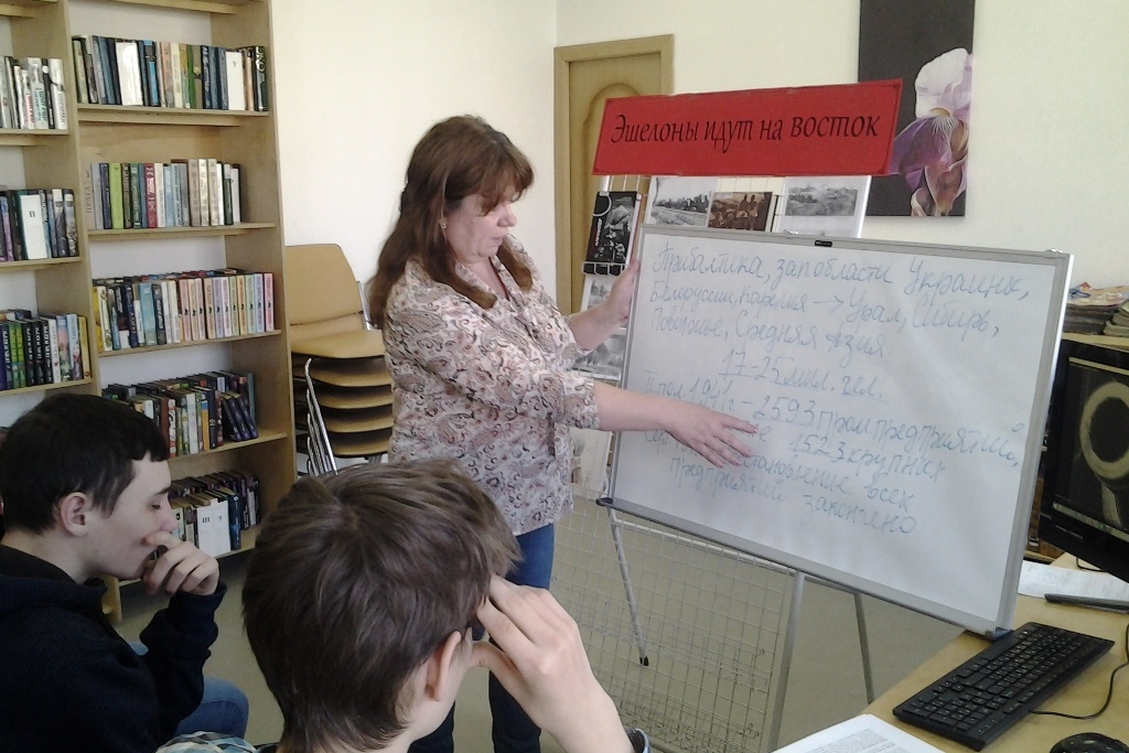 Библиотека №16 продолжает освещать историю Великой Отечественной войны, рассматривая различные ее стороны. 18 и 21 февраля старшеклассники школы №43 знакомились с еще одной стороной Великой Отечественной войны – эвакуацией. С самого начала Великой Отечественной войны возникла острая необходимость в массовой эвакуации населения из западных областей страны на Урал, в Сибирь, Поволжье и в Среднюю Азию. По разным данным, из зоны боевых действий вглубь страны были эвакуированы от 17 до 25 миллионов человек. Это была беспримерная эвакуация гражданского населения в условиях тотальной войны. Как удалось выполнить эту сложнейшую операцию? Кого эвакуировали в первую очередь? Как встретили переселенцев в новых для них краях?