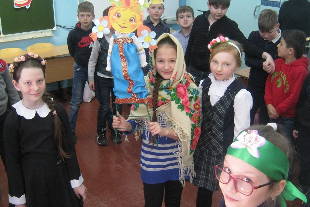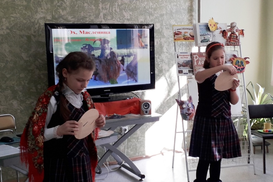 27 марта библиотека №15 подготовила и провела в младших классах школы № 54 мероприятие «Солнце с Масленицей дружит». Ребята не только с интересом слушали о традициях праздника, которые уходят корнями вглубь нашей истории, но и сами с удовольствием мастерили «Солнышко» для карусели, играли в русскую народную игру «Ручеек», водили хоровод вокруг «Масленицы». Среди девочек класса был проведен конкурс «Краса – длинная коса», по итогам которого звание Весны получила Милана Борисенко, длина ее косы составила 65 см. Ребята водили хоровод, отгадывали загадки, играли в «Горячий блин», пытались плясать вприсядку. Закончилось мероприятие чаем с блинами.
