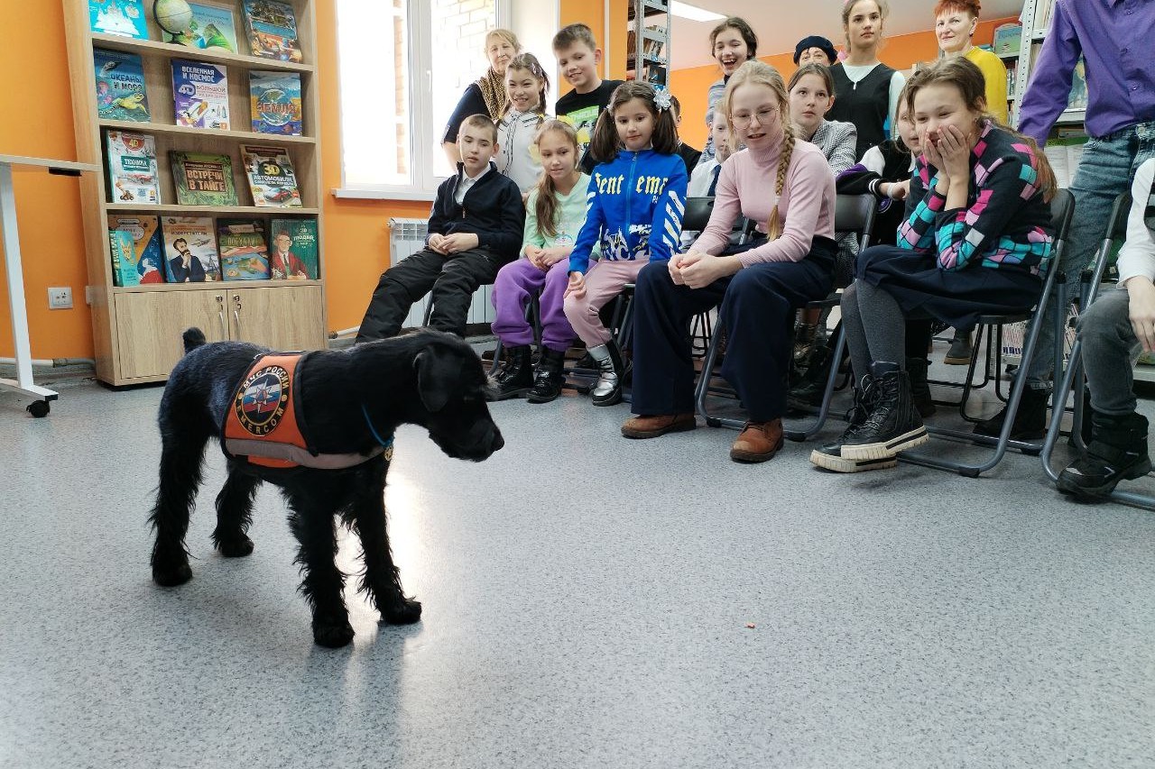 Гости библиотеки с интересом изучали принцип действия специального оборудованного рабочего места для людей с ОВЗ, особенно стол с микролифтом и наличие сразу двух клавиатур, одна из которых предназначена для читателей с нарушением зрения. Конечно, заинтересовались работой мультстудии «КНИГОмультик», с интересом расспрашивали о занятиях, о планах студии. Продолжился интерактив встречей новых друзей с профессиональным кинологом. Вновь в библиотеку пришли Екатерина Валерьевна Воронцова – спасатель ПСП (кинологическое) Главного управления МЧС России по Приморскому краю, кинолог, зоопсихолог, специалист по поведению собак и четырехлетний миттельшнауцер Достояние Прикамья Вольт.