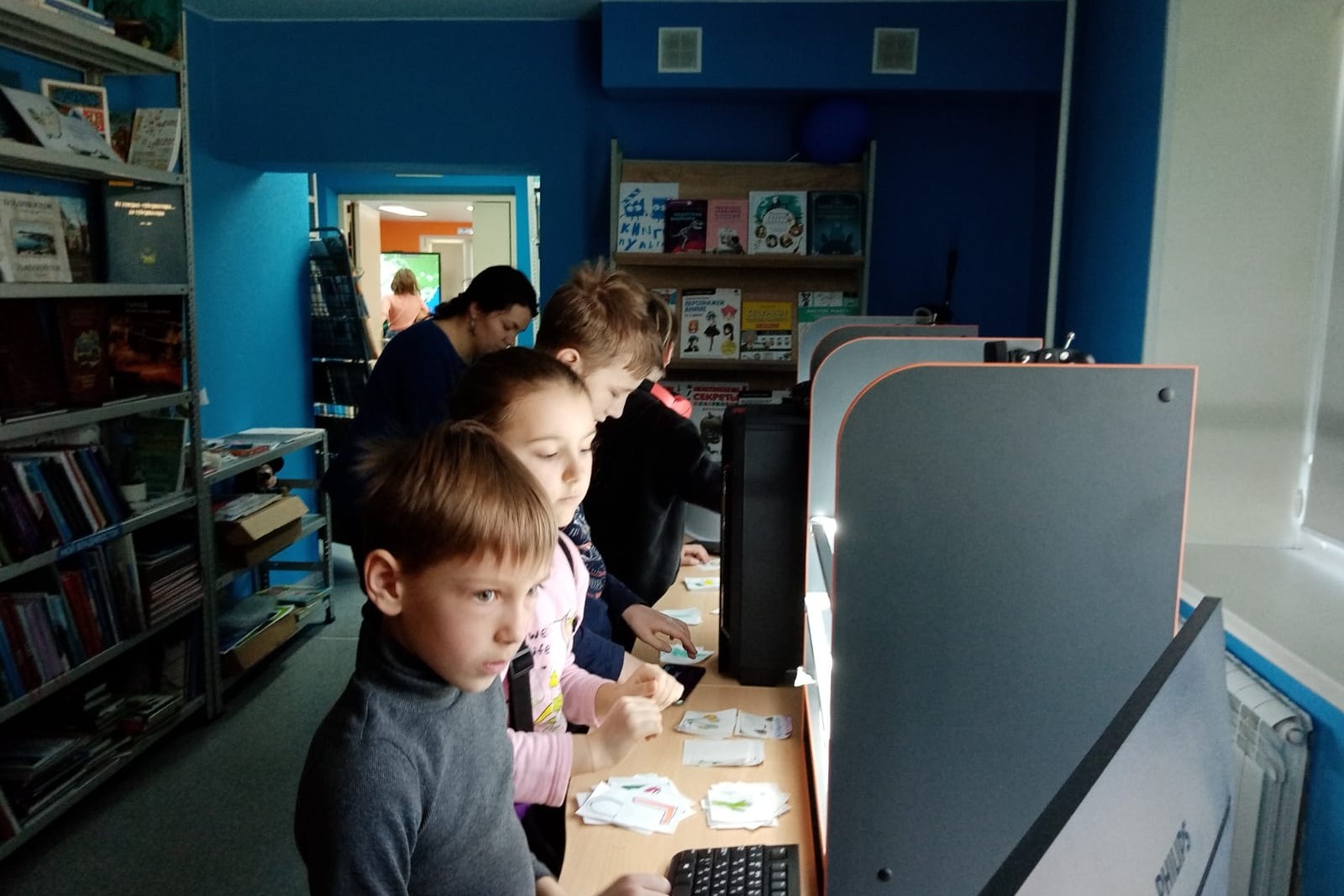 Стоит отметить, что оборудование для развития креативных индустрий — три мультстанка, интерактивную панель и новое компьютерное оборудование библиотека № 20 на Заре получила в ходе реализации регионального проекта модернизации учреждений культуры в 2023 году. Также пространство библиотеки пополнилось новой, современной мебелью, оборудованы места для тихого чтения и работы — мягкие пуфы и кресло – капсула прекрасно вписались в интерьер.