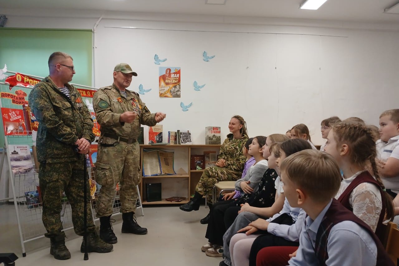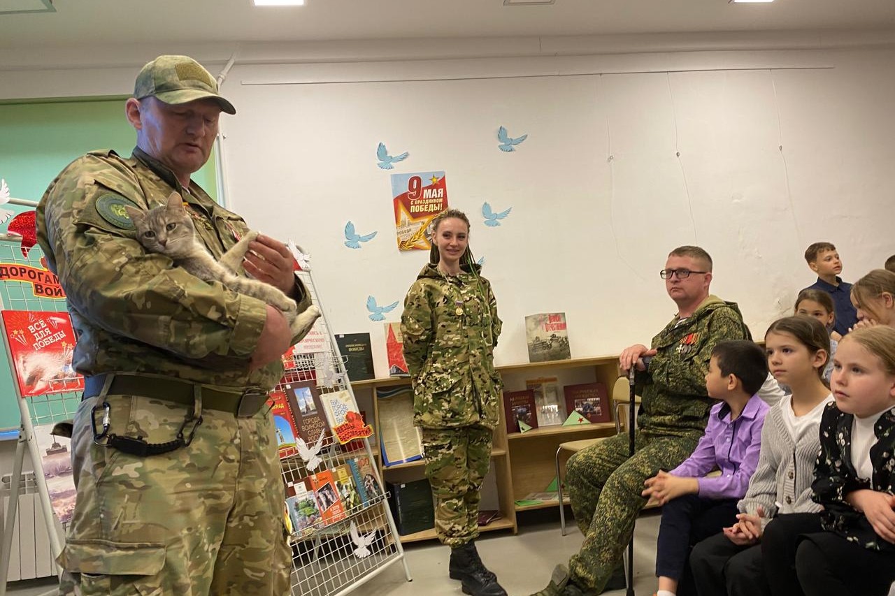 Максим Борискин пришел на встречу со своим боевым другом – котом по кличке Курск, который вместе с ним «участвует» в СВО. Курск вёл себя на мероприятия очень достойно и, конечно, очаровал ребятишек. Светлана Константиновна обратила внимание ребят на то, какую роль имеют в поддержании боевого духа письма и поделки, которые дети направляют военнослужащим, показав видеоряд со словами благодарности от участников СВО. Горячев Максим Евгеньевич подчеркнул, что современный военный должен быть не только физически подготовленным, но и обладать глубокими знаниями, уметь быстро принимать решения в сложных ситуациях, быть готовым защищать свою Родину.