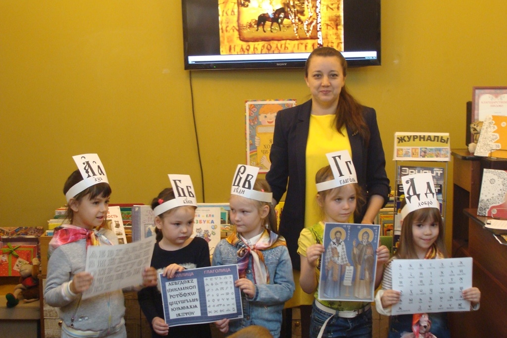 24 мая библиотека №4 пригласила дошкольников и учащихся начальных классов познакомиться с историей праздника – День славянской письменности и культуры.