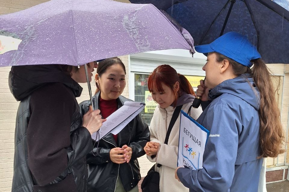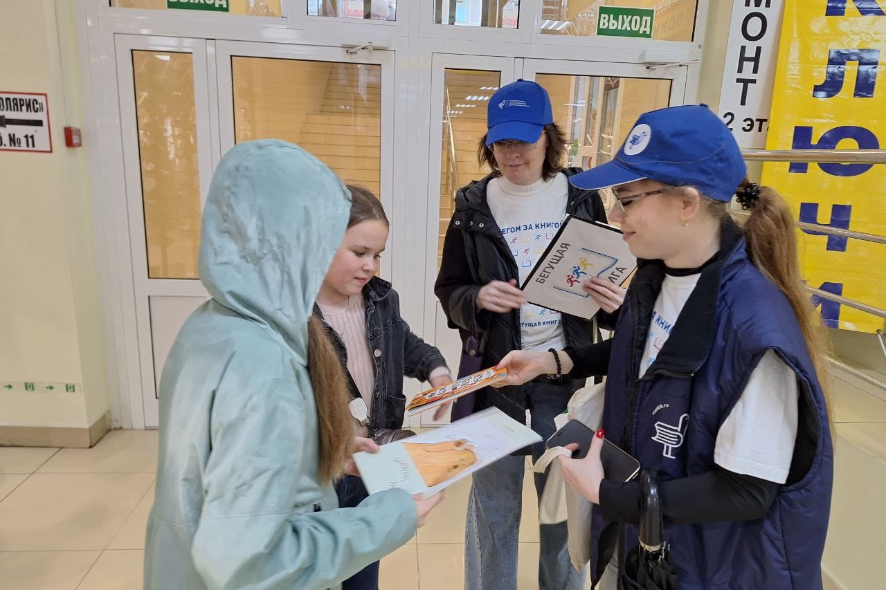 Участники акции — сотрудники библиотек и волонтеры — бежали «навстречу» горожанам и останавливались, чтобы напомнить о библиотеках, вспомнить персонажей знаменитых книг, обменяться улыбками и вручить сувениры.