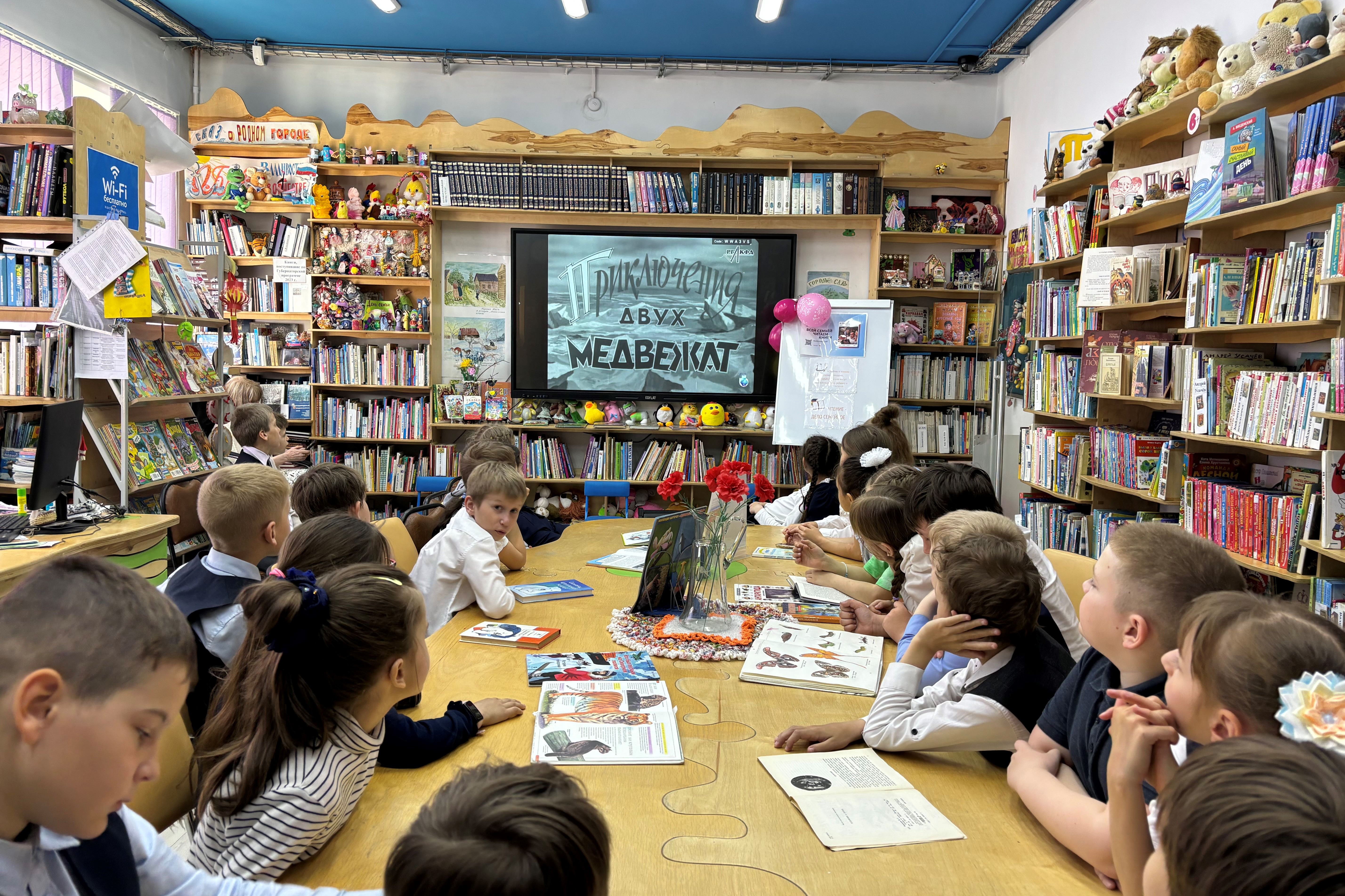 15 мая в библиотеке № 20 состоялся кинопоказ посвященный празднику «День полярного кино»: «Приключения двух медвежат». Киножурнал «Звездочка-5». На этот праздник пришли ученики 1 «В» класса АНПОО «ДВЦНО» ШОД им. Н.Н. Дубинина. Библиотекарь рассказала ребятам о том, что 21 мая отмечается День полярника в России. Этот праздник был установлен Указом Президента РФ и официально отмечается с 2013 года. А также дети узнали, что в этот день в 1937 году (87 лет назад) полярная воздушная экспедиция Академии наук СССР высадила научную станцию «Северный полюс-1» прямо на дрейфующий лед Арктики и станция начала свою работу. Затем в кинозале модернизированной библиотеки ученики посмотрели правдивую историю, которая произошла на одной из полярных станций в Арктике: «Приключения двух медвежат». Юных зрителей не оставила равнодушными история осиротевших белых медвежат, которых спасли участники полярной экспедиции. Была также представлена книжная выставка, посвященная празднику «День полярника». На выставке были представлены книги и журналы: «Открытие Антарктиды» (Беллинсгаузен Ф.Ф.), «Фомка – белый медвежонок» (Чаплина В.В.), «Животные нашей планеты» (Энциклопедии с дополненной реальностью) (Кошевар Д.В., Папуниди Е.А.). Детей заинтересовали два рассказа Галины Мальцевой: «Дед Мороз и футбол» и «Дед Мороз и арбузное семечко». Журнал «Мурзилка» (№1, 2023г.).