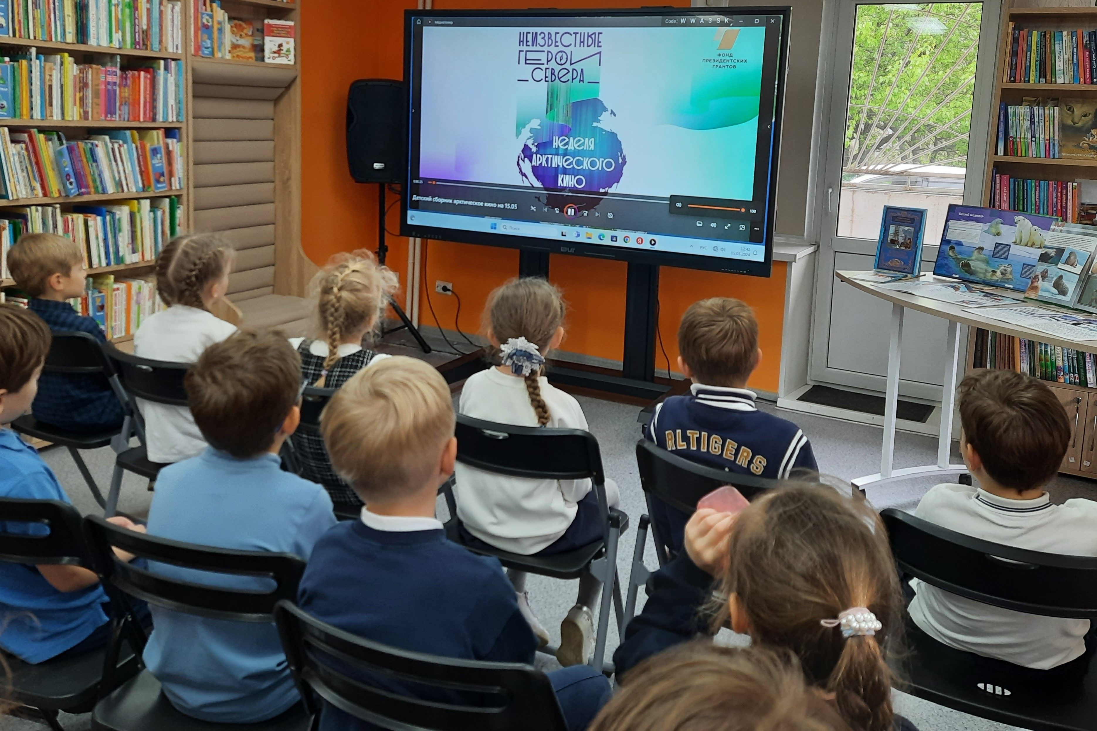 21 мая в детской библиотеке № 7 участниками акции стали ученики 2 «Б» класса школы № 74. Вначале шел разговор о том, кто же такие полярники. Как узнали дети в ходе беседы, полярники – это не профессия, а так называют всех, кто работает в Арктике и Антарктике. Полярники – участники полярных экспедиций, исследователи полярных районов. Это ученые, например, метеорологии, океанологии, геофизики, гляциологии. Дети некоторые научные слова услышали впервые. Они с интересом смотрели фильм «Приключения двух медвежат». Этот фильм был предоставлен Российским государственным архивом кинофотодокументов для проекта «Неизвестные герои Севера» при поддержке Фонда президентских грантов и Президентского фонда культурных инициатив.
