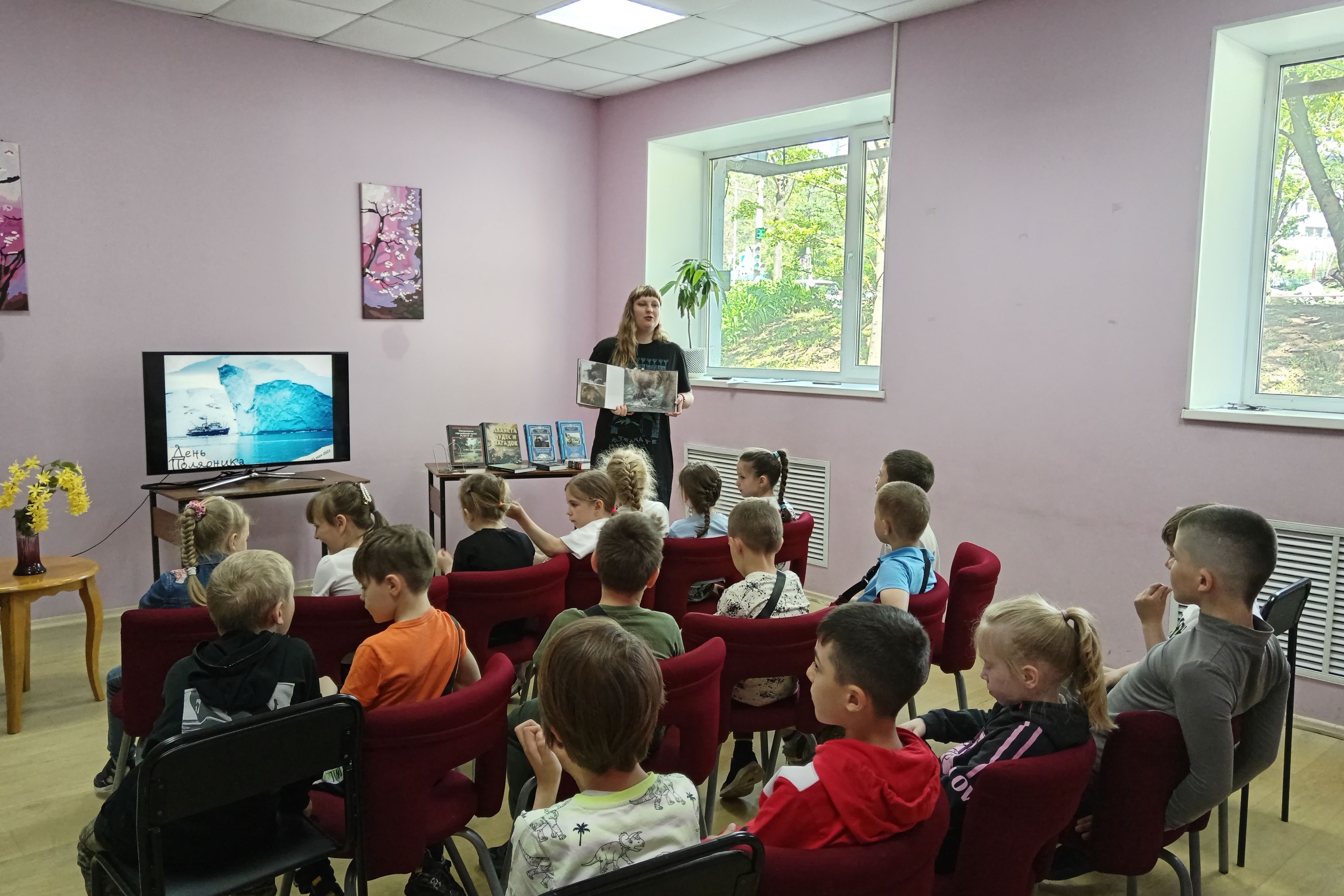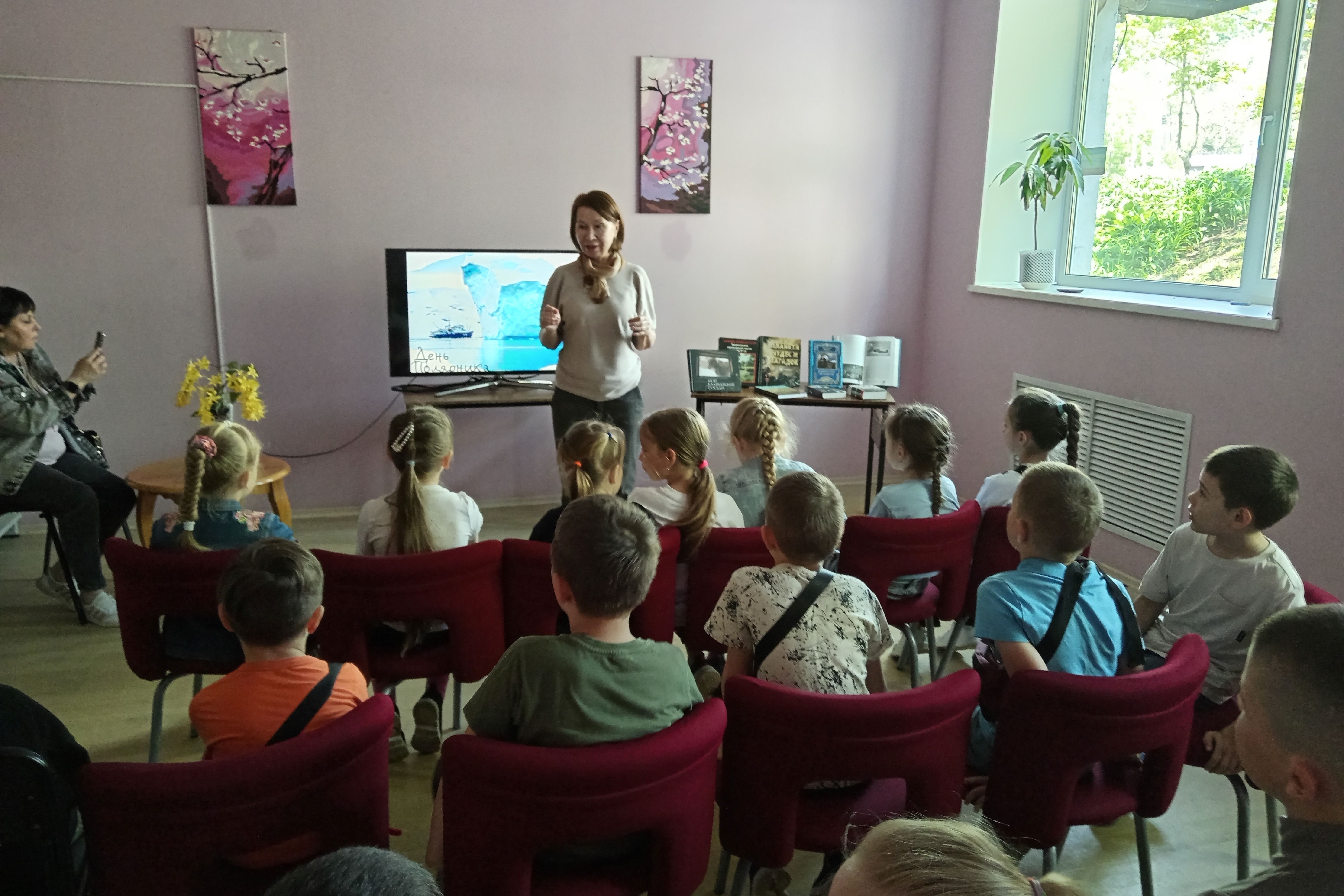 В этот день первоклассники СОШ № 61 1 «А» класса посетили библиотеку № 13, чтобы ближе познакомиться с крайним Севером России и виртуально посетить полярные станции Арктики, а также национальный заповедник «Русская Арктика». Школьников познакомили с книгами о первооткрывателях Севера, с энциклопедиями о заповедниках России, животном мире Арктики и литературой о выдающихся географических открытиях, рассказали об истории освоения северных земель. Также ребята с интересом посмотрели документальный фильм «Приключения медвежат», повествующий историю братьев-медвежат, спасенных русскими исследователями-полярниками. Дети с увлечением вступили в диалог с библиотекарем, отвечали на вопросы, рассуждали на тему: кто такие полярники, где работают и что изучают.