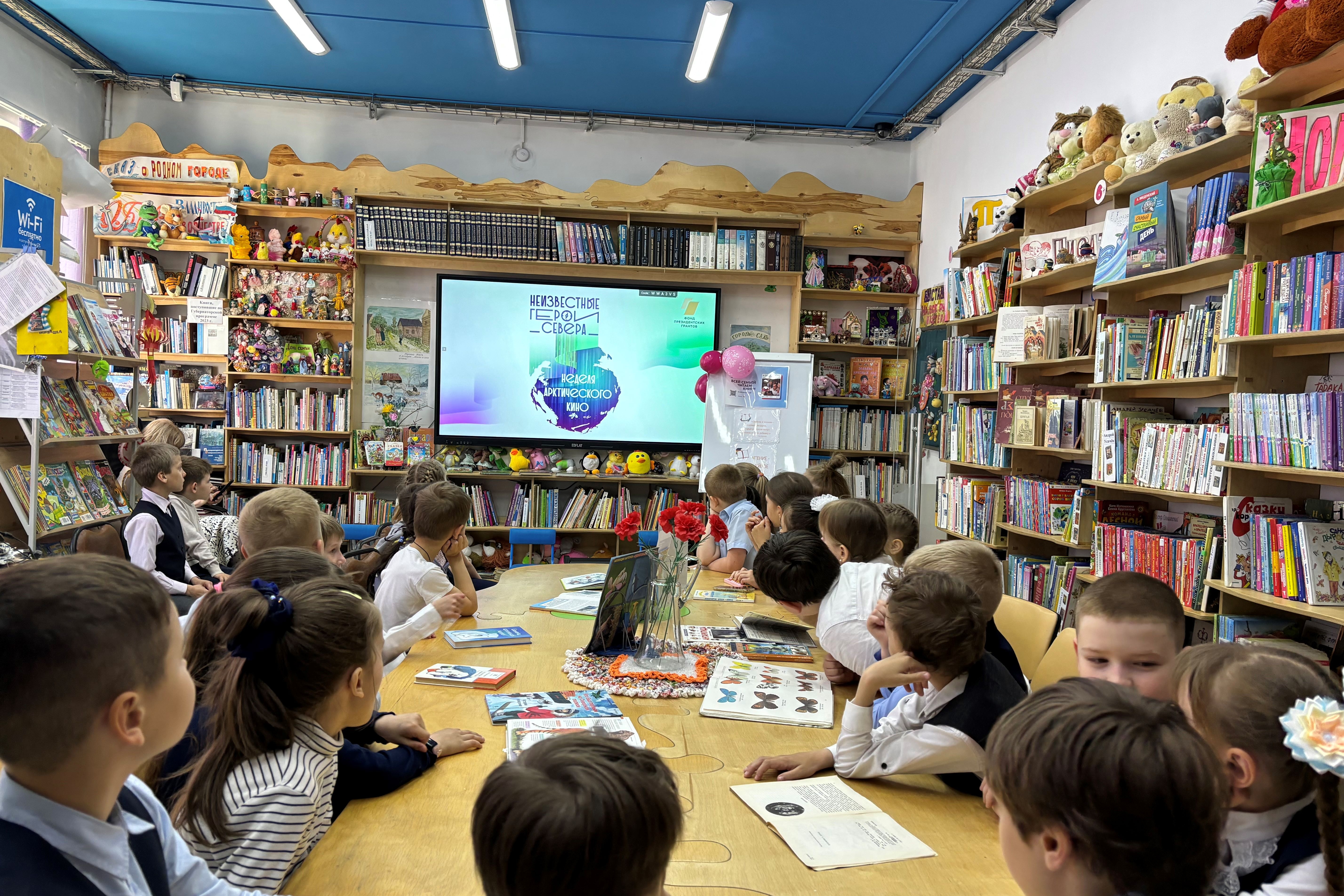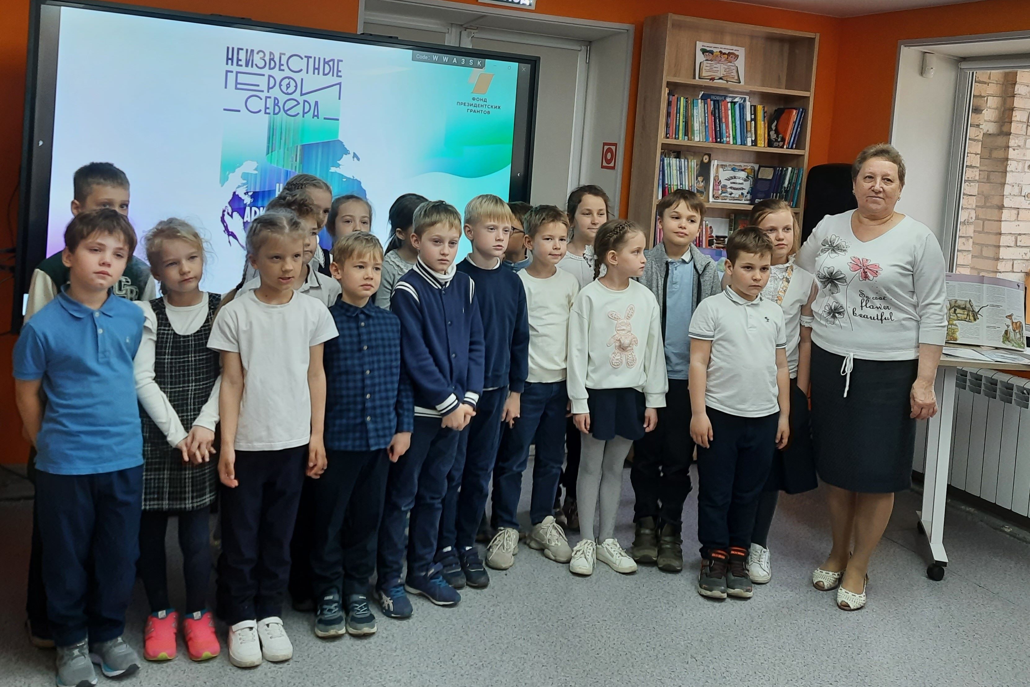 21 мая в детской библиотеке № 7 участниками акции стали ученики 2 «Б» класса школы № 74. Вначале шел разговор о том, кто же такие полярники. Как узнали дети в ходе беседы, полярники – это не профессия, а так называют всех, кто работает в Арктике и Антарктике. Полярники – участники полярных экспедиций, исследователи полярных районов. Это ученые, например, метеорологии, океанологии, геофизики, гляциологии. Дети некоторые научные слова услышали впервые. Они с интересом смотрели фильм «Приключения двух медвежат». Этот фильм был предоставлен Российским государственным архивом кинофотодокументов для проекта «Неизвестные герои Севера» при поддержке Фонда президентских грантов и Президентского фонда культурных инициатив.