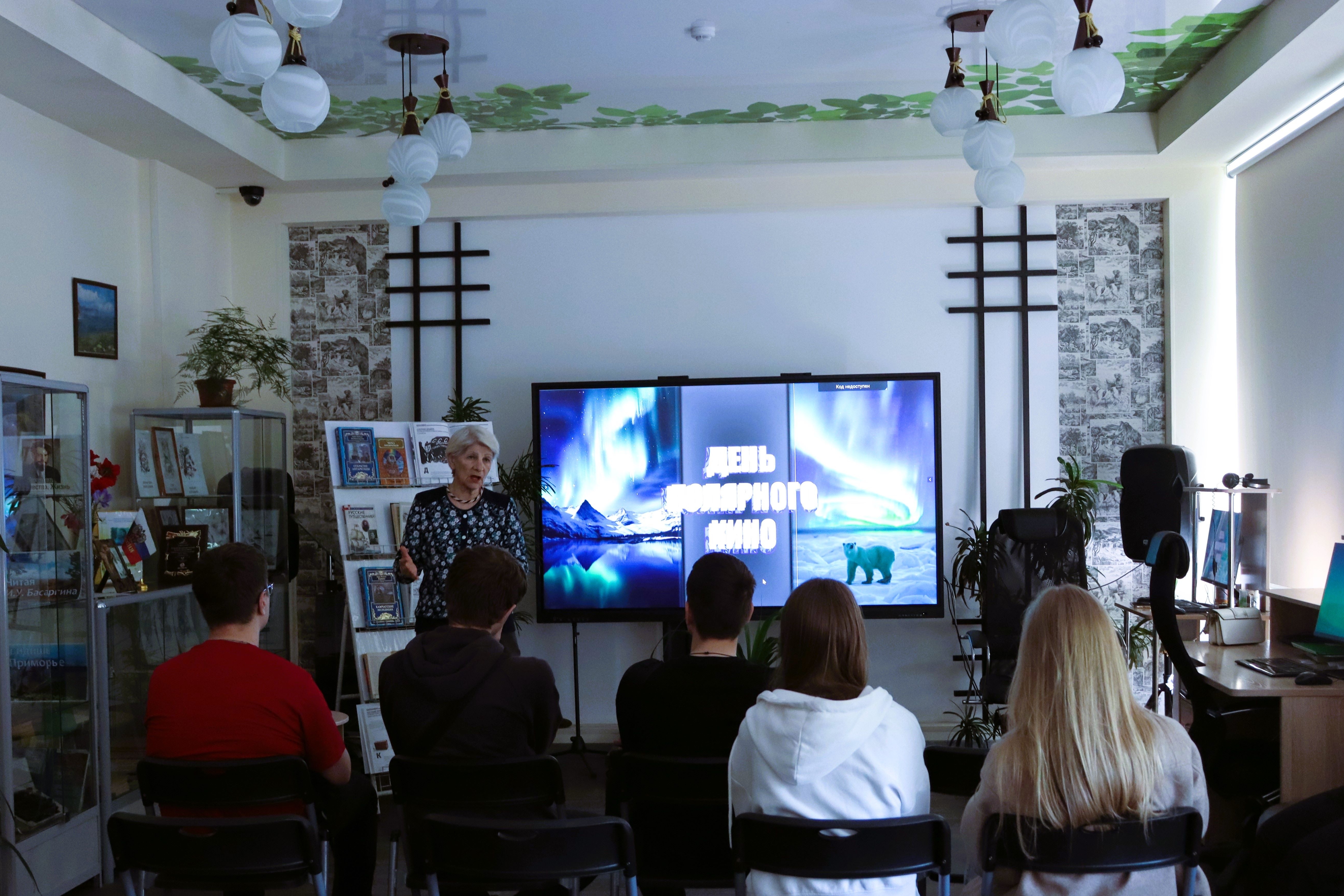 В этот день первоклассники СОШ № 61 1 «А» класса посетили библиотеку № 13, чтобы ближе познакомиться с крайним Севером России и виртуально посетить полярные станции Арктики, а также национальный заповедник «Русская Арктика». Школьников познакомили с книгами о первооткрывателях Севера, с энциклопедиями о заповедниках России, животном мире Арктики и литературой о выдающихся географических открытиях, рассказали об истории освоения северных земель. Также ребята с интересом посмотрели документальный фильм «Приключения медвежат», повествующий историю братьев-медвежат, спасенных русскими исследователями-полярниками. Дети с увлечением вступили в диалог с библиотекарем, отвечали на вопросы, рассуждали на тему: кто такие полярники, где работают и что изучают.