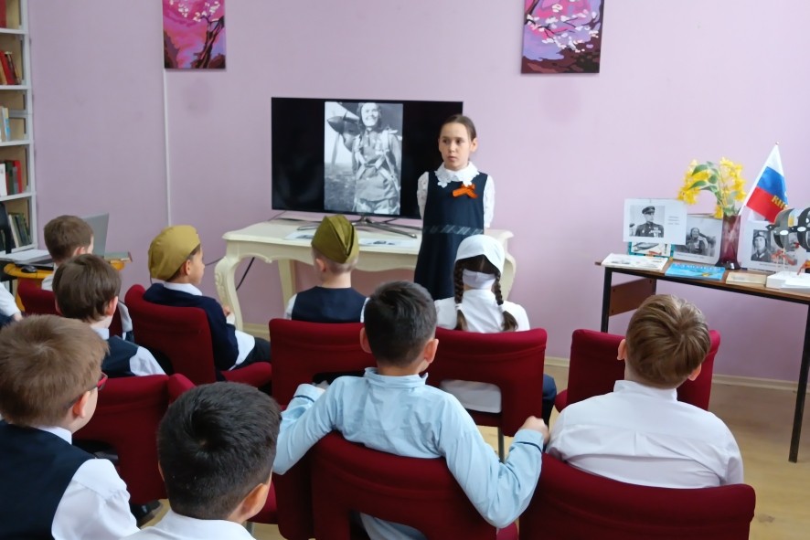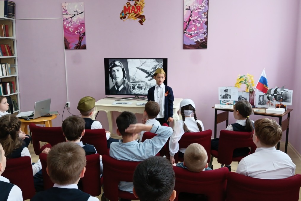 Библиотека №13 провела патриотический час для ребят 2 «Г», 2 «В», 4 «Г» и 7 «А» классов СОШ №61, посвященный 80-летию со дня победы в Великой Отечественной войне.