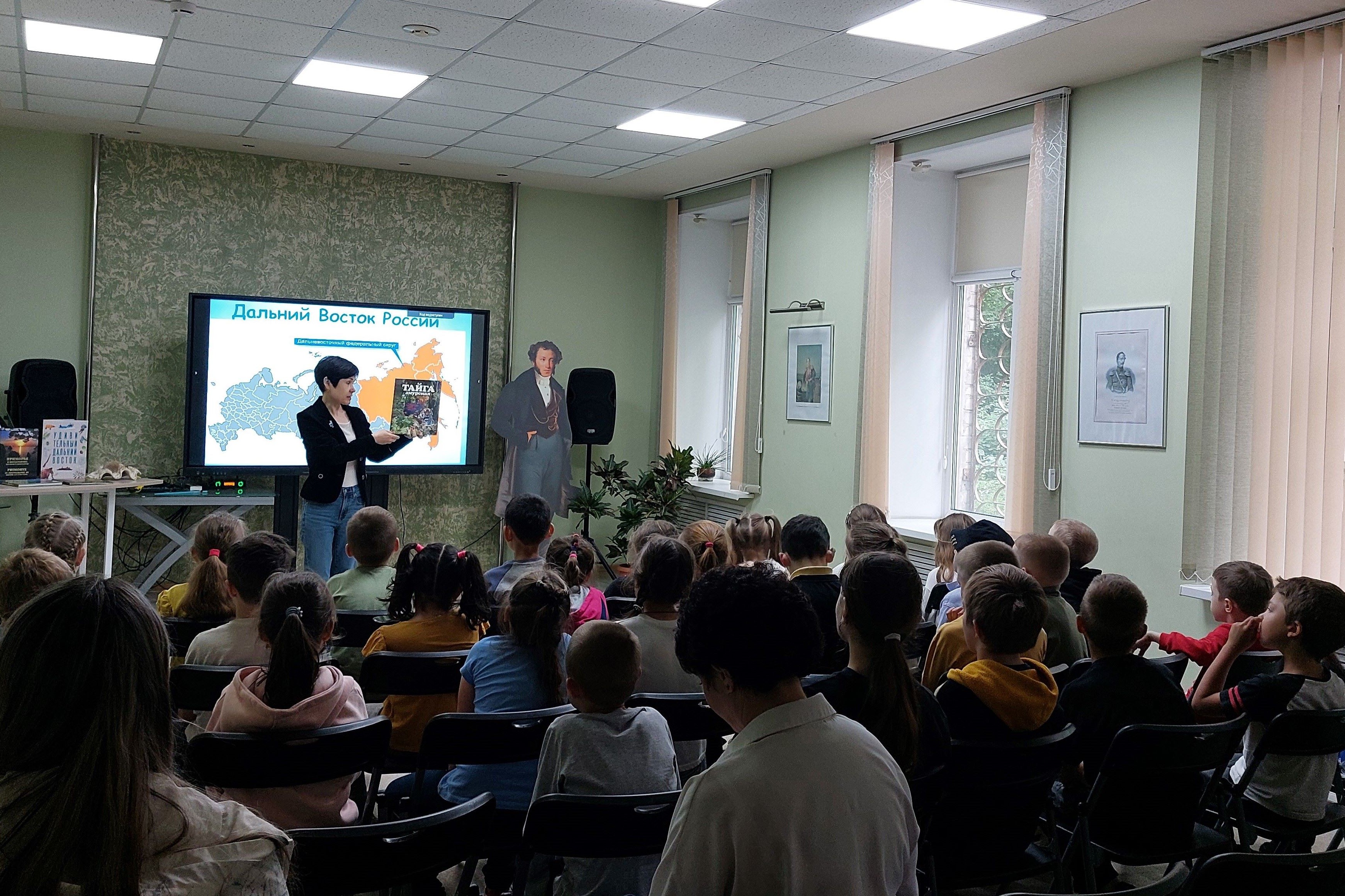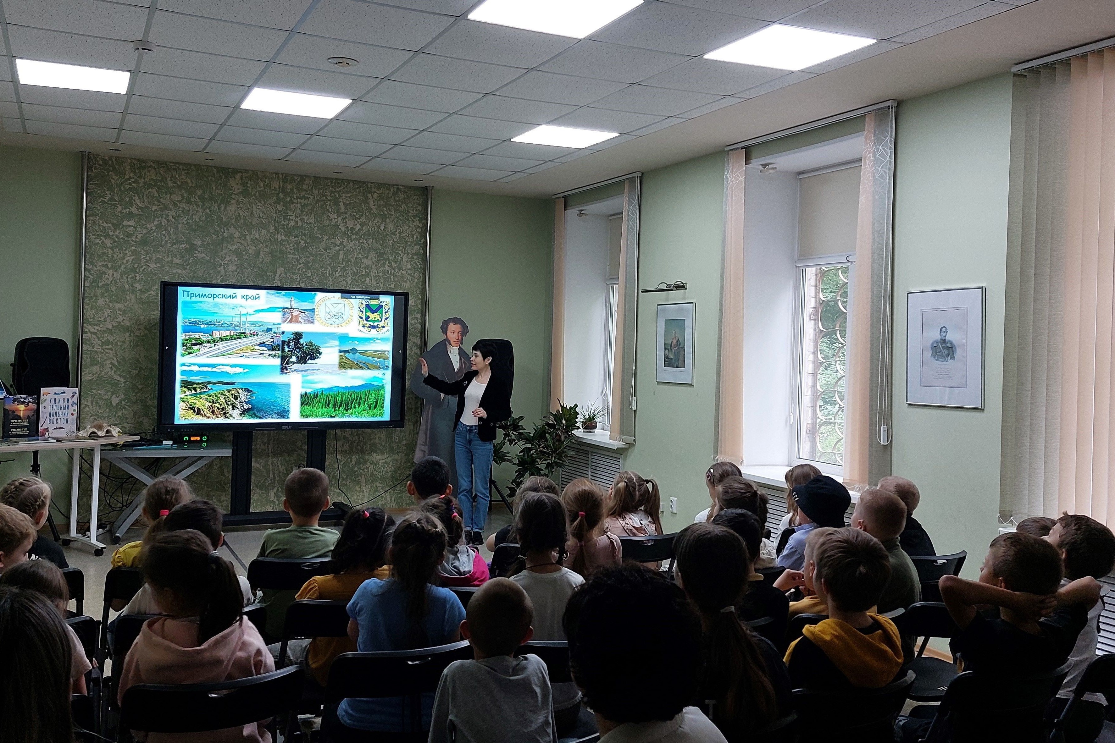 Краеведческий час «Край тайги и моря» для участников летнего оздоровительного лагеря СОШ № 62 состоялся 26 июня в библиотеке им. Н.Н. Муравьева-Амурского. Тема выбрана не случайно – на протяжении всей смены в лагере ребята будут изучать историю, природные достопримечательности Приморья, знакомиться с фольклором и бытом коренных народов, населяющих край.