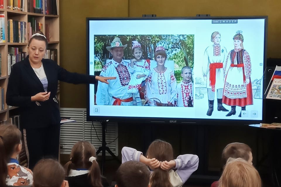 25 июня в МБДОУ № 144 сотрудники библиотеки № 20 провели познавательную программу, посвященную Дню единения славян. Мероприятие открыл видеоролик о Дне единения славян. Библиотекарь отметила, что славянская культура и литература играют важную роль, так как благодаря славянской культуре и зачинателям славянской письменности Кириллу и Мефодию, многие народы общаются на понятном для всех межнациональном, межгосударственном русском языке. Именно русский язык открывает богатство культуры и историю каждого народа. Дошколята узнали о неофициальных символах России (валенки, берёзка, балалайка, самовар) и Беларуси (зубр, аист, картофель, цветок василек).