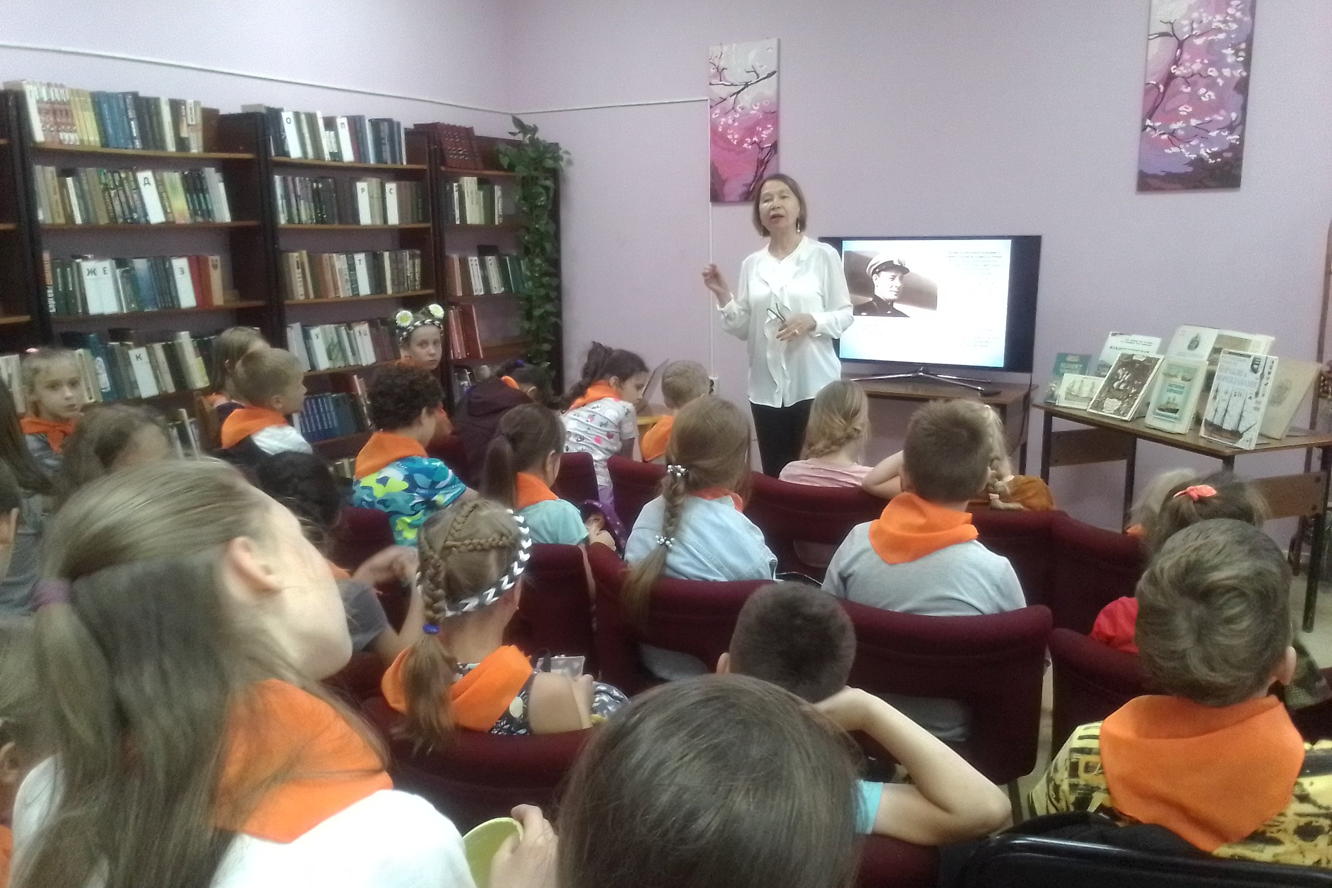 Библиотека № 13 для детей из пришкольного лагеря школы №63 организовала час истории «Российскому Военно-морскому флоту быть!». Дети прослушали рассказ об адмирале Кузнецове – основателе праздника ВМФ, о Петре I – русском царе-флотоводце, благодаря которому был завоеван вход в Азов и Черное море, а также Балтийское море. Эти моменты истории особенно важны для развития нашего государства, так как поспособствовали признанию России на международном уровне. Школьники впервые узнали об этих событиях минувших лет. Для расширения культурологического мировоззрения детям показали фрагмент танца яблочко в исполнении балета Игоря Моисеева. После этого воспитанники лагеря приняли участие в викторине «Владивосток – город нашенский». Школьники проявили эрудицию, отвечая на вопросы по истории современного города и Владивостока военных лет.